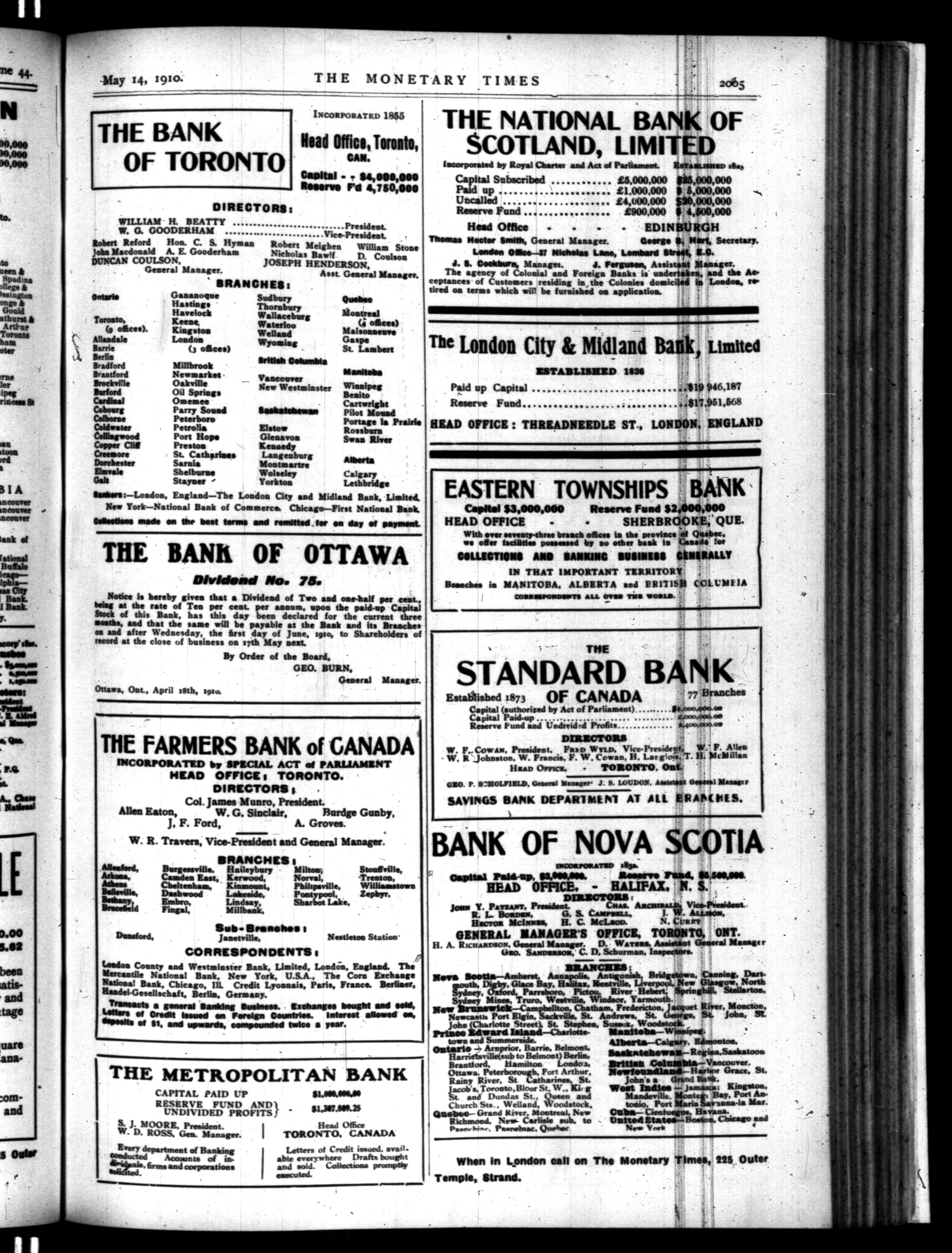 The monetary times, trade review and insurance chronicle : Vol. 44, No. 20 (May 14, 1910)
