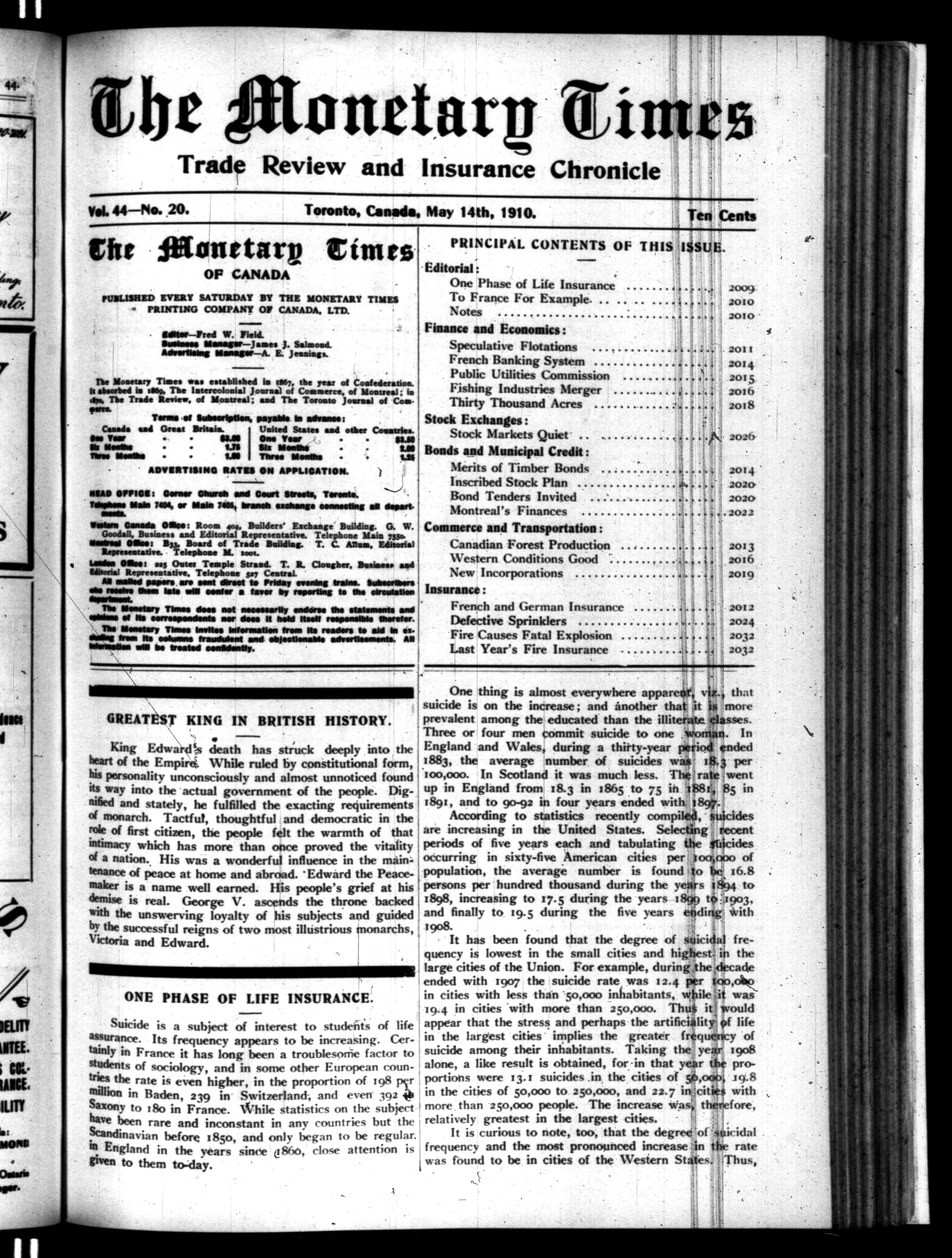 The monetary times, trade review and insurance chronicle : Vol. 44, No. 20 (May 14, 1910)