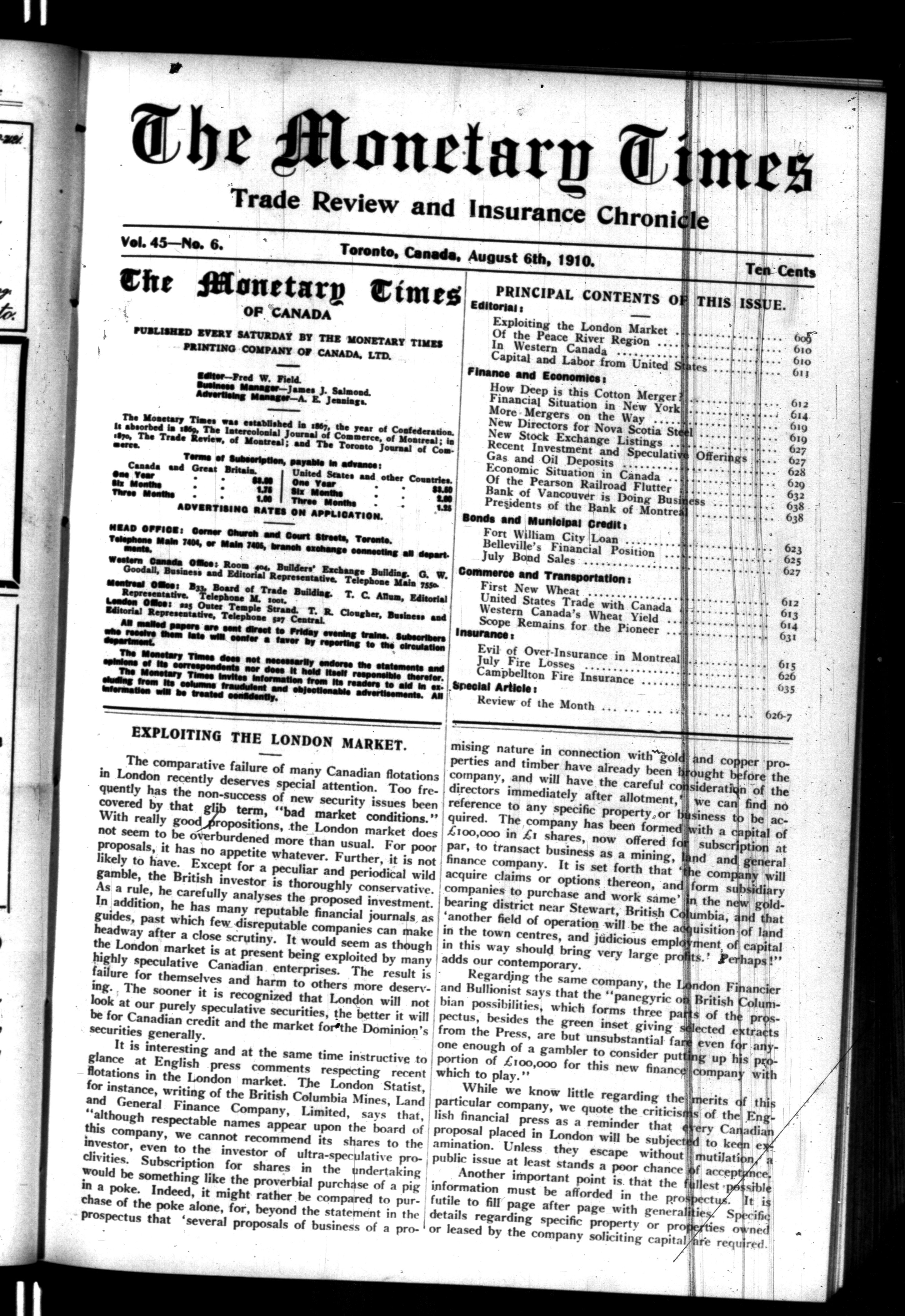The monetary times, trade review and insurance chronicle : Vol. 45, No. 6 (August 6, 1910)