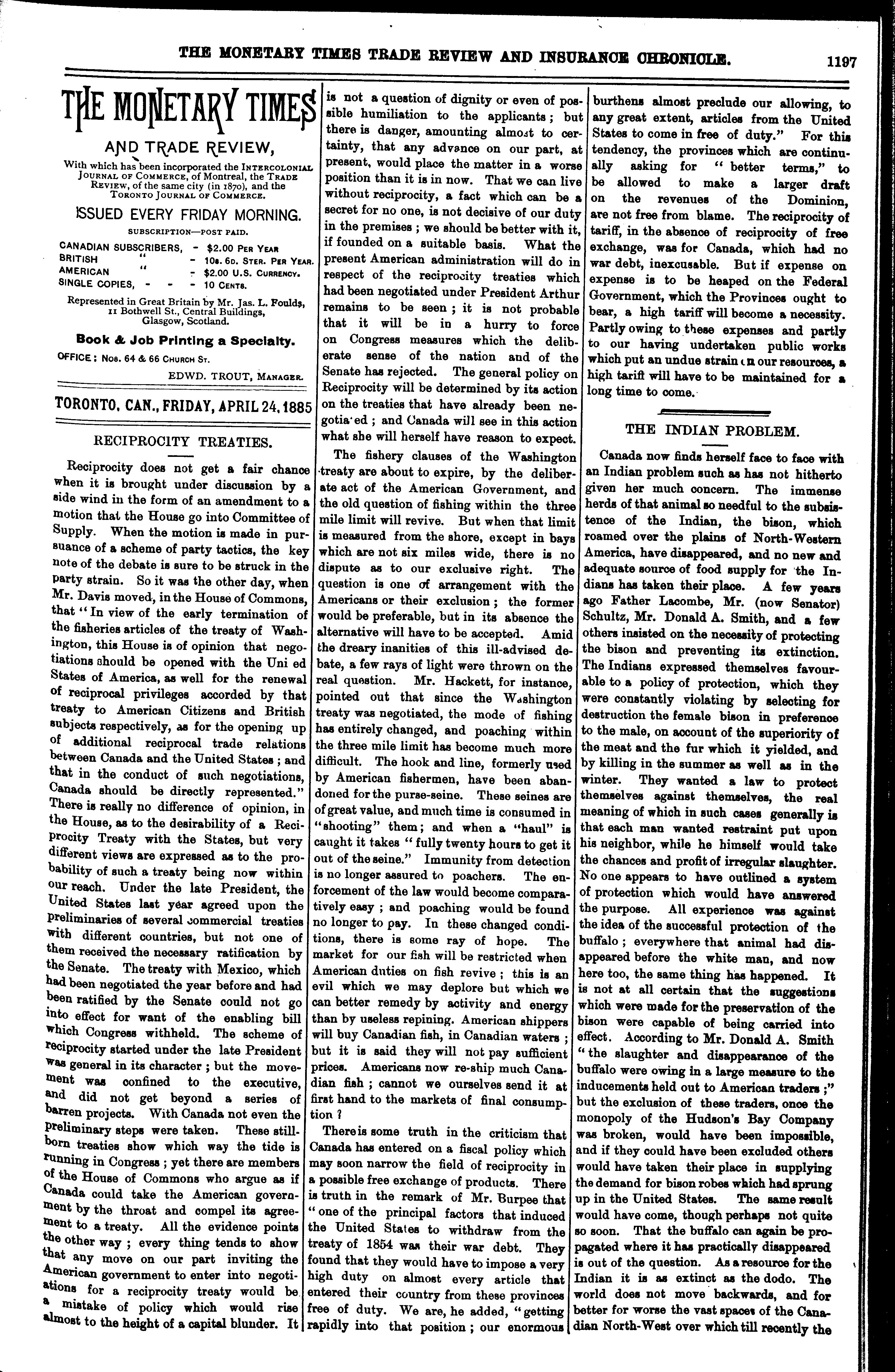 The monetary times, trade review and insurance chronicle : [Vol. 18, no. 43 (Apr. 24, 1885)]