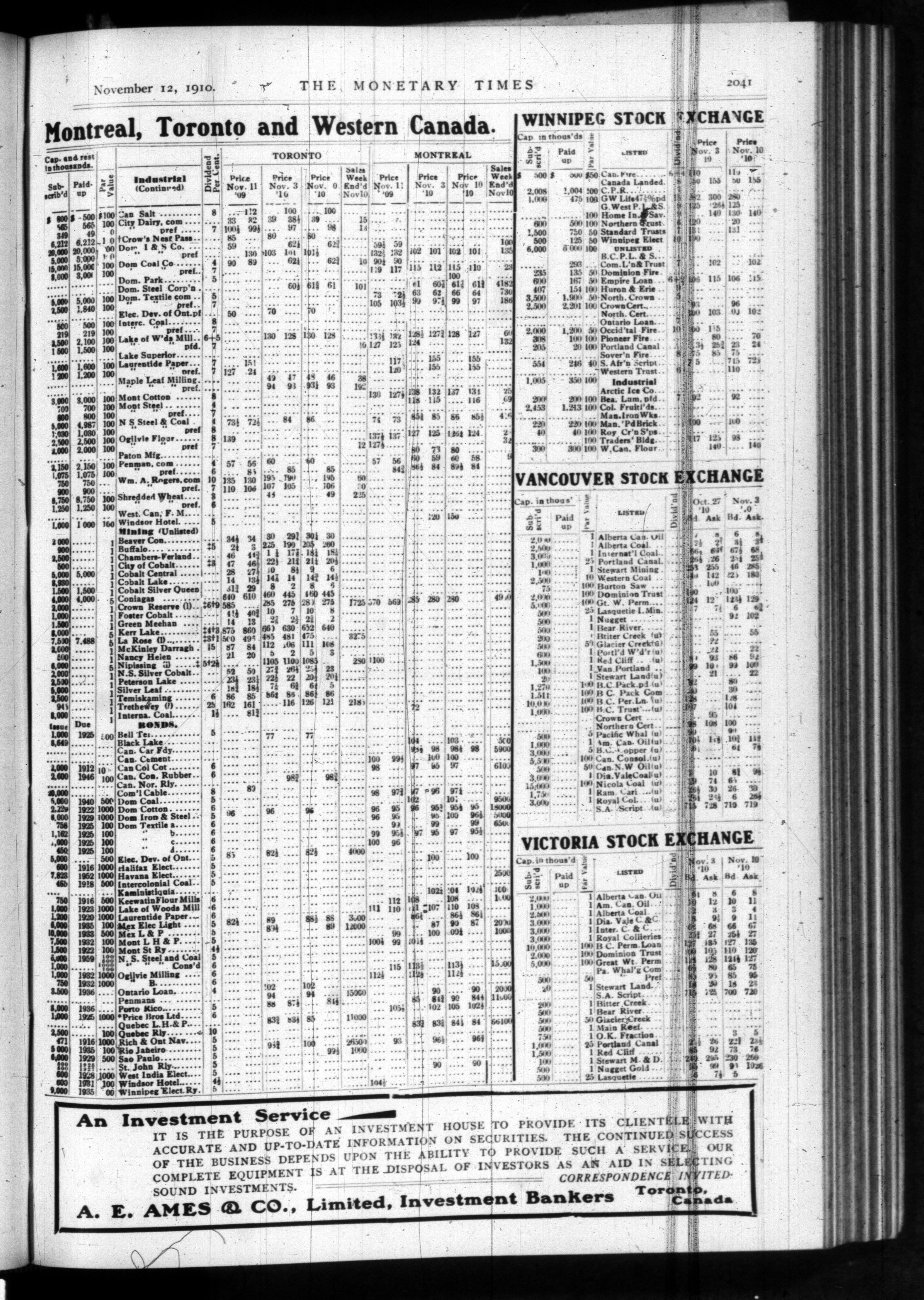 The monetary times, trade review and insurance chronicle : Vol. 45, No. 20 (November 12, 1910)