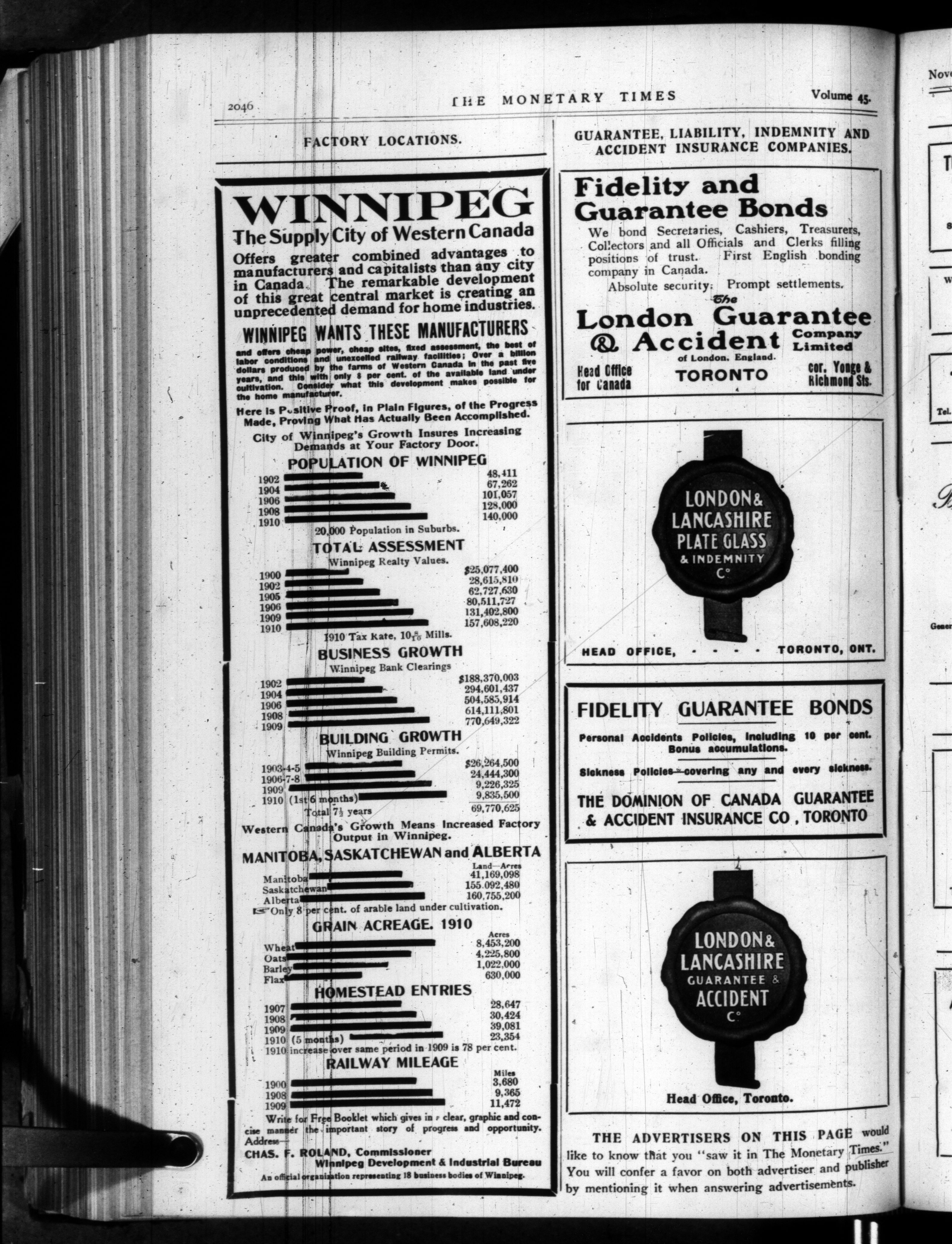 The monetary times, trade review and insurance chronicle : Vol. 45, No. 20 (November 12, 1910)
