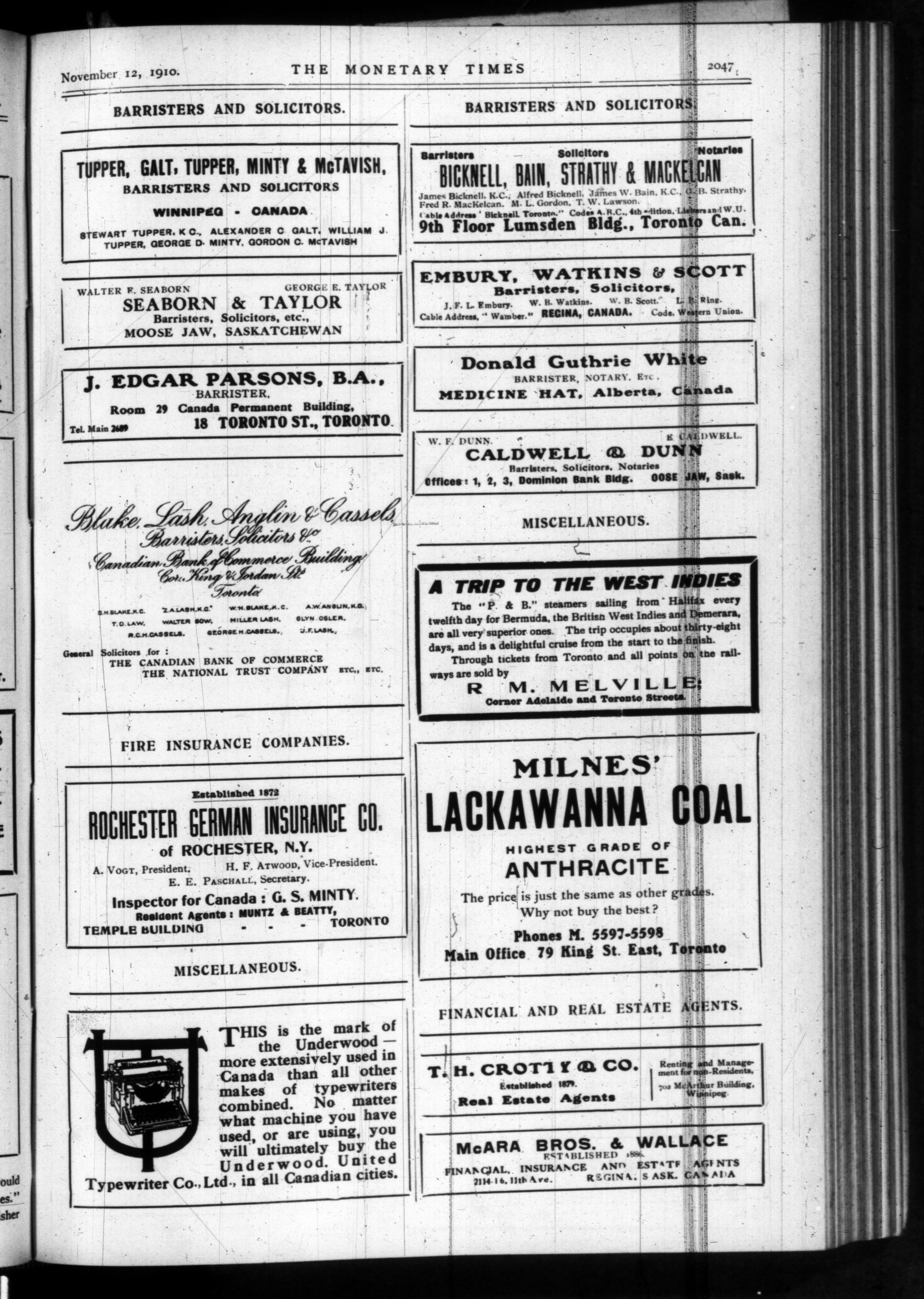 The monetary times, trade review and insurance chronicle : Vol. 45, No. 20 (November 12, 1910)