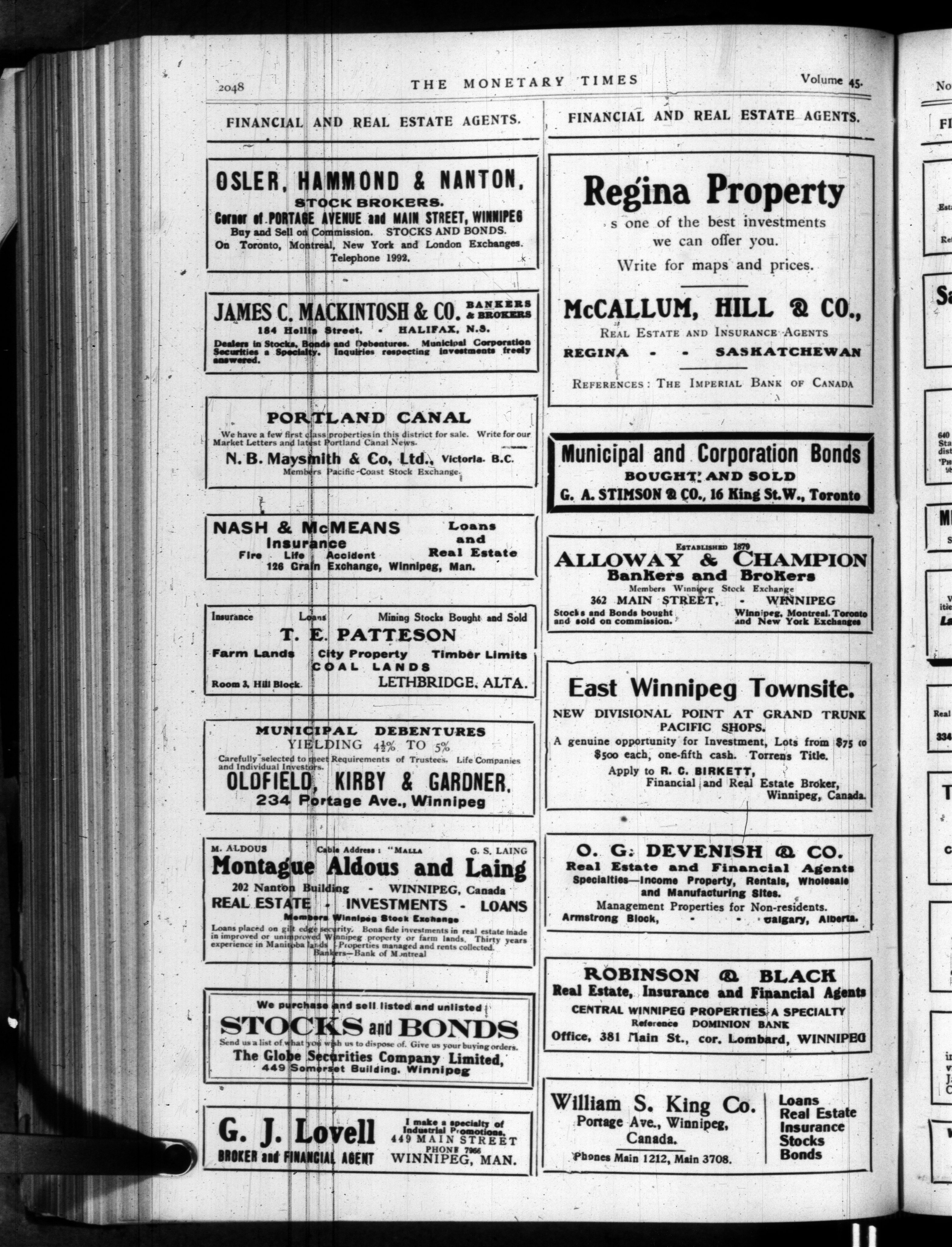 The monetary times, trade review and insurance chronicle : Vol. 45, No. 20 (November 12, 1910)