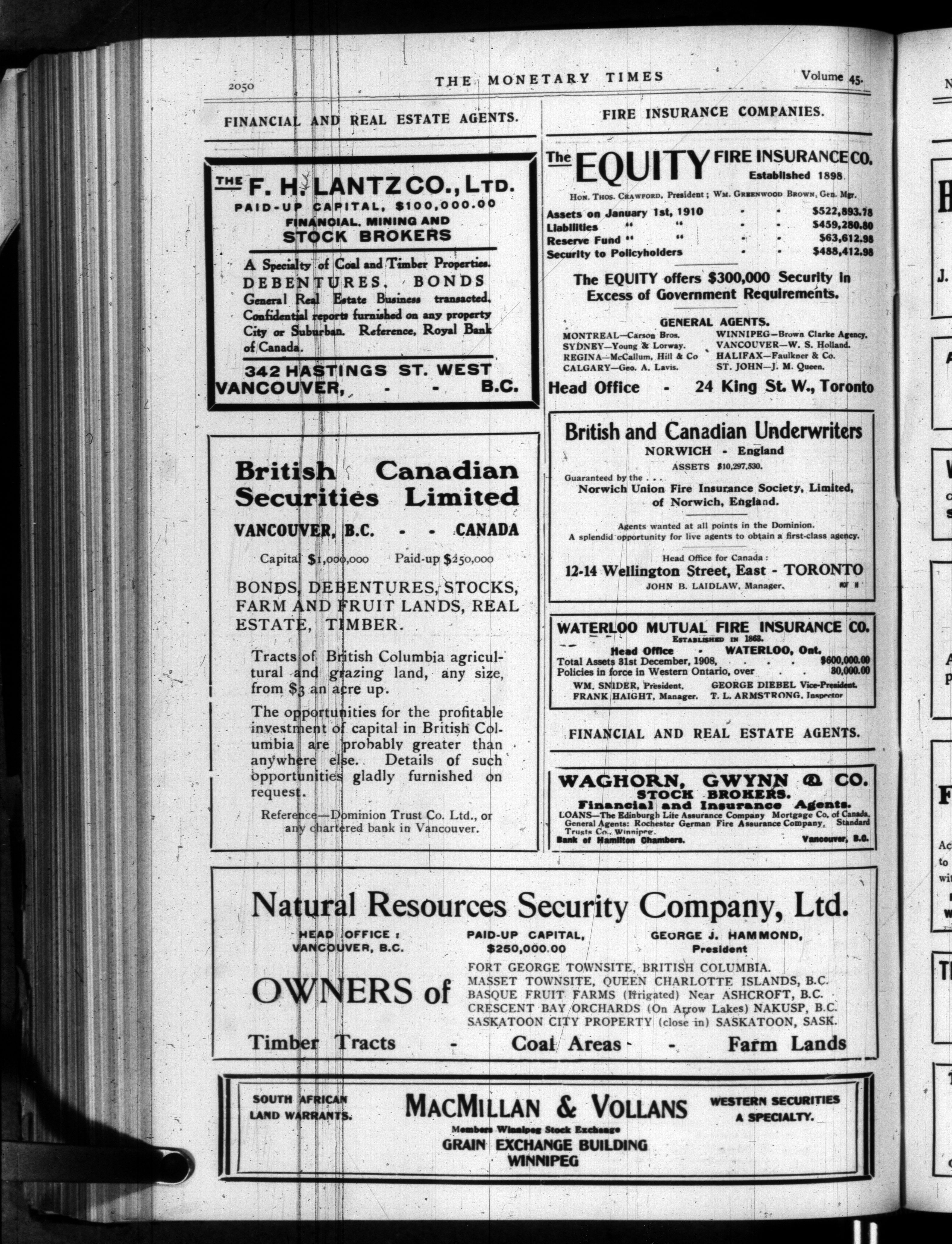 The monetary times, trade review and insurance chronicle : Vol. 45, No. 20 (November 12, 1910)