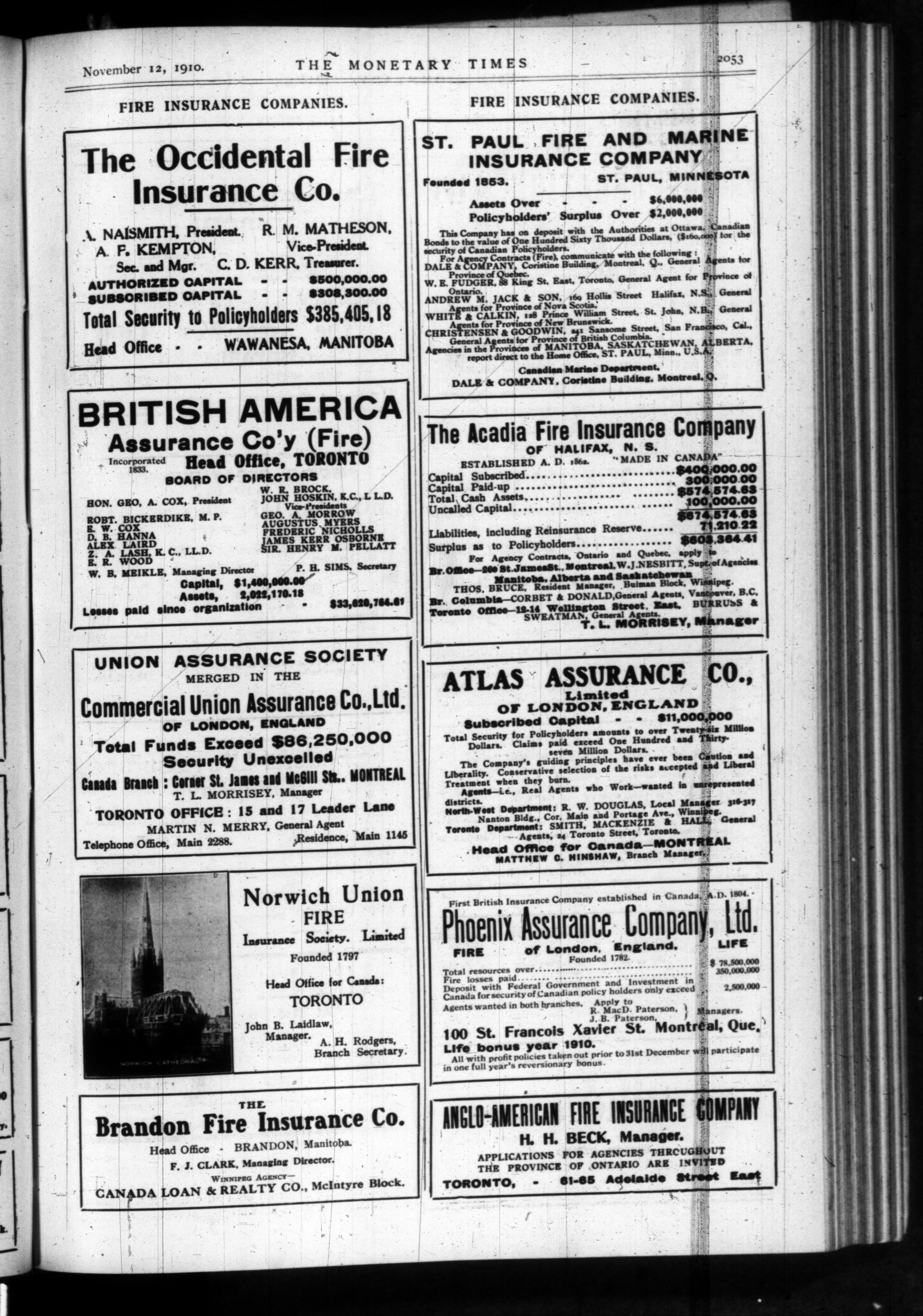 The monetary times, trade review and insurance chronicle : Vol. 45, No. 20 (November 12, 1910)