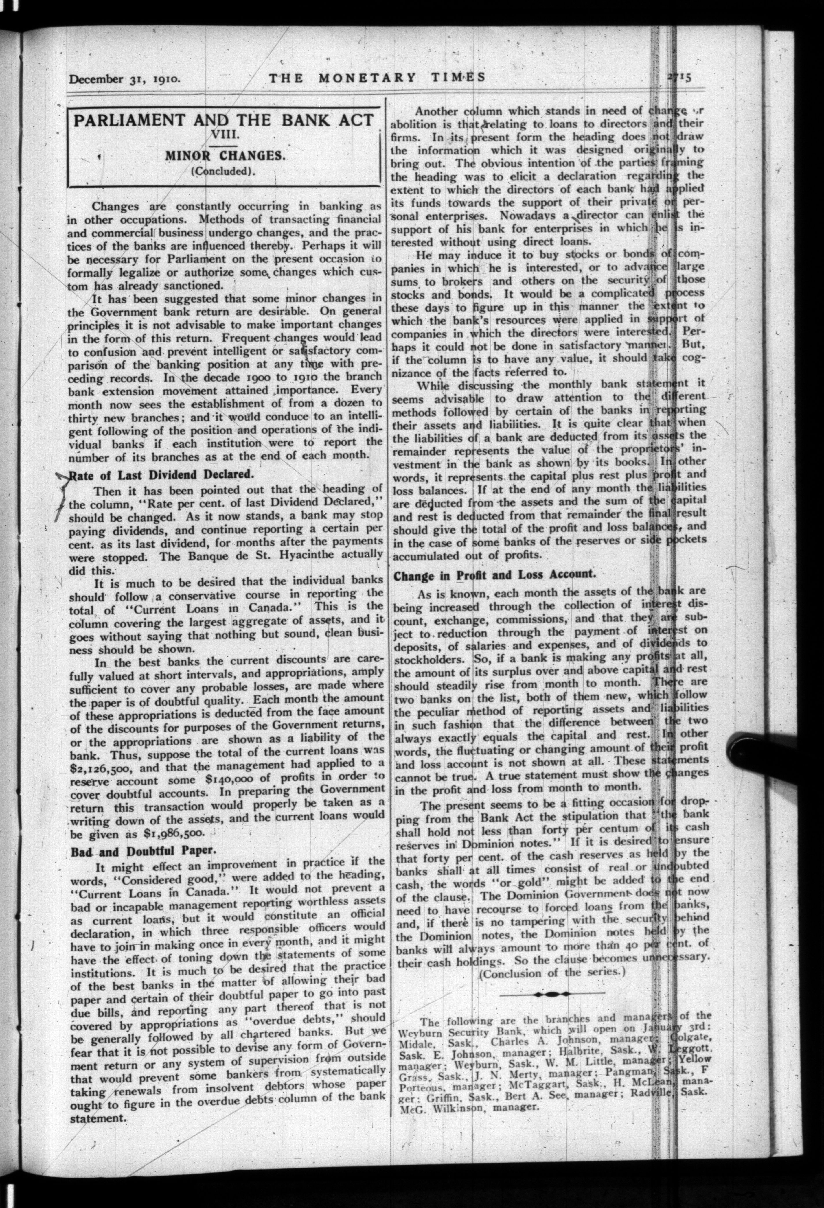 The monetary times, trade review and insurance chronicle : Vol. 45, No. 27 (December 31, 1910)