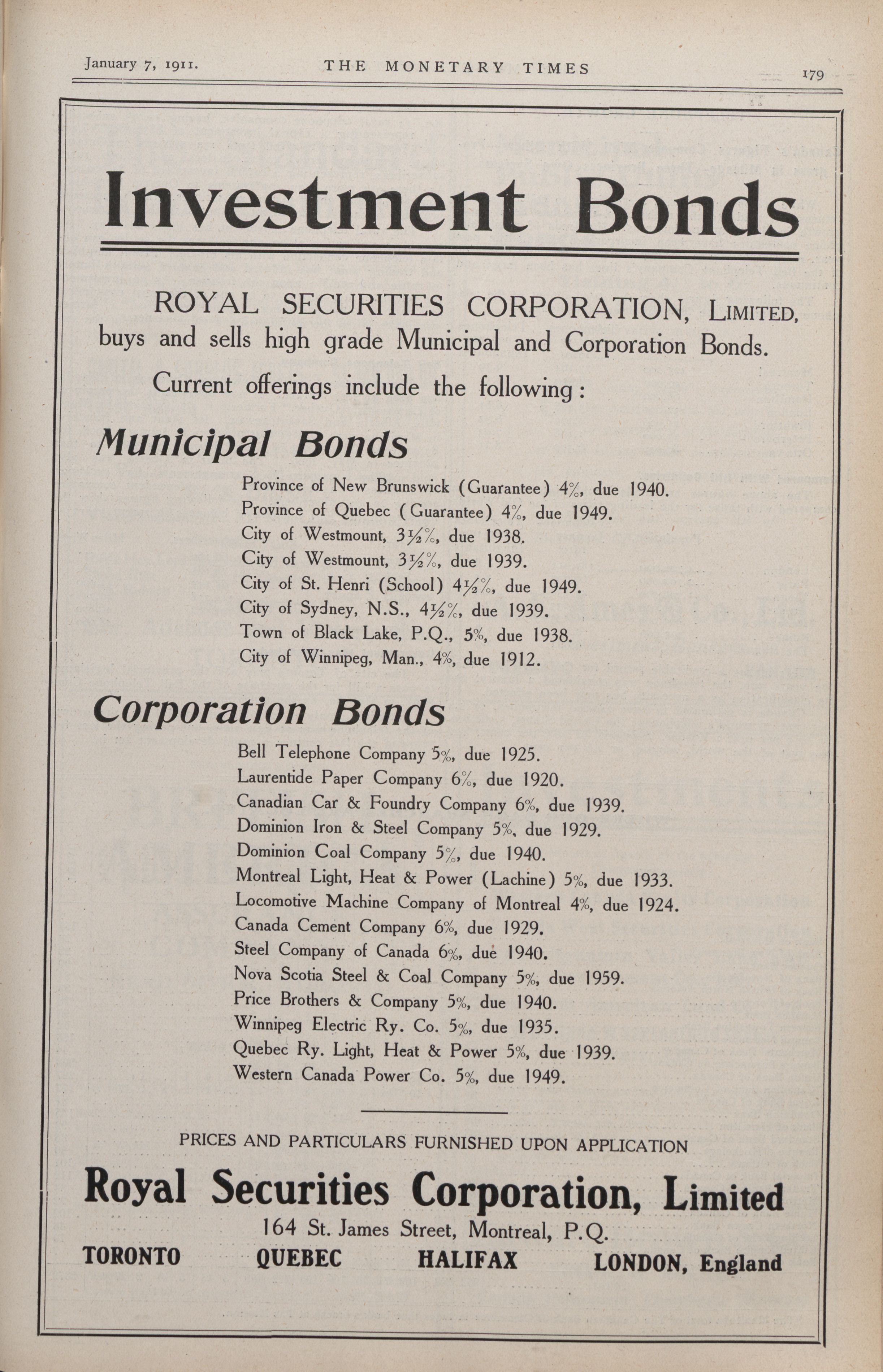 Toronto, Canada : The Monetary Times Printing Company of Canada, Limited, [1911]
