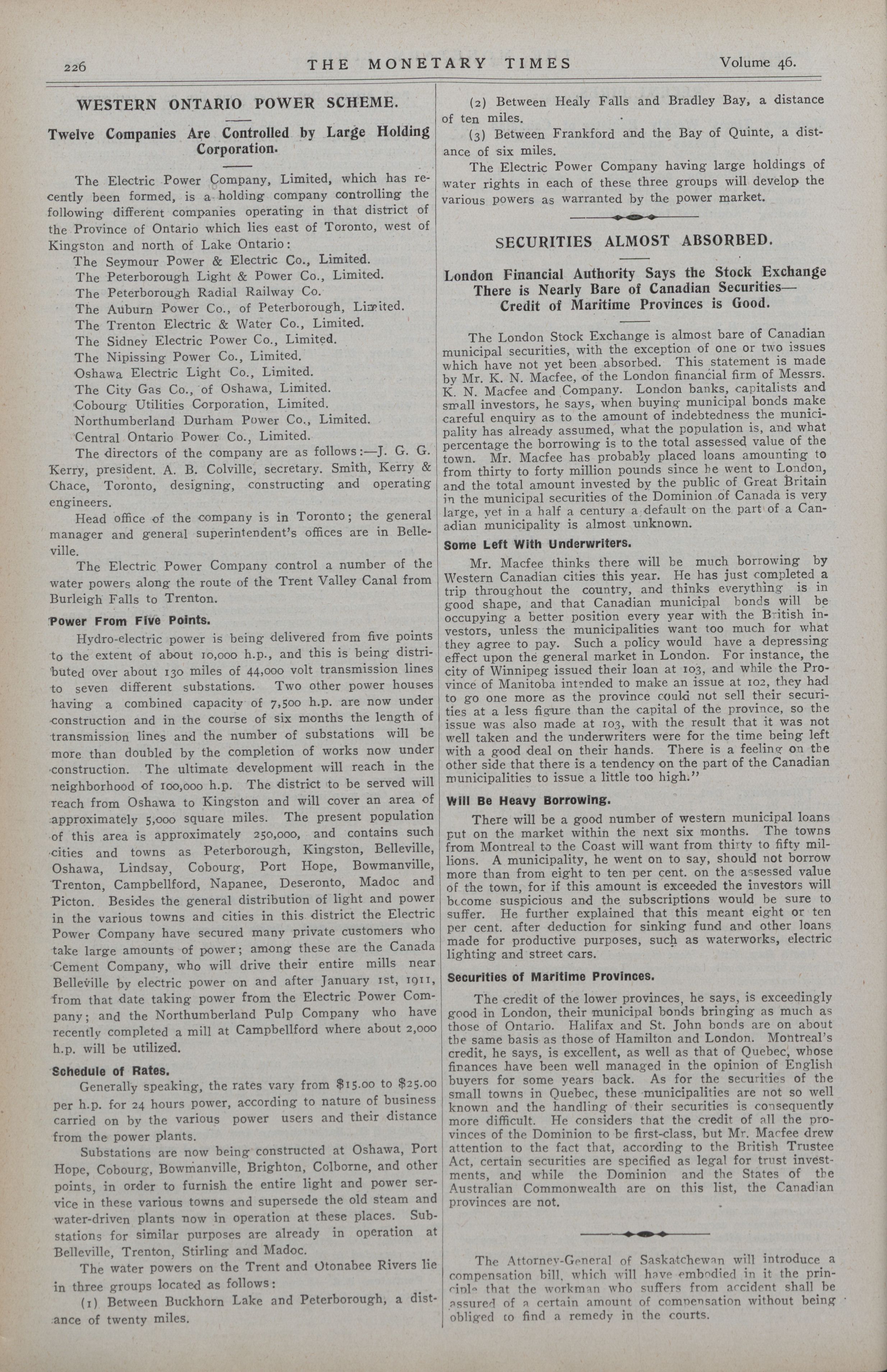 The Monetary Times, trade review and insurance chronicle. : Vol. 46 No. 2 (January 14th, 1911.)