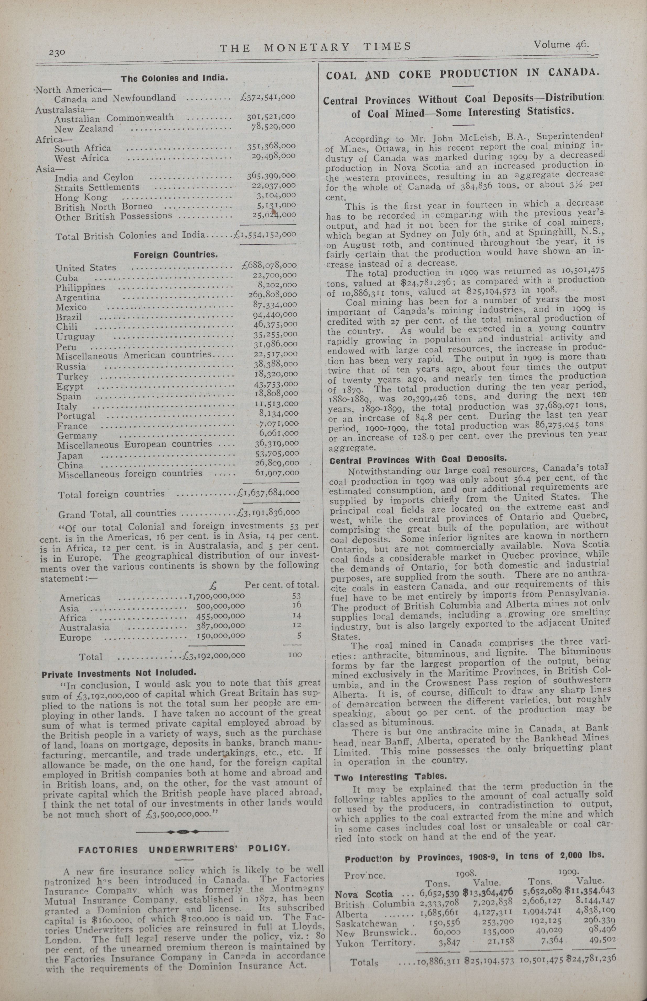 The Monetary Times, trade review and insurance chronicle. : Vol. 46 No. 2 (January 14th, 1911.)