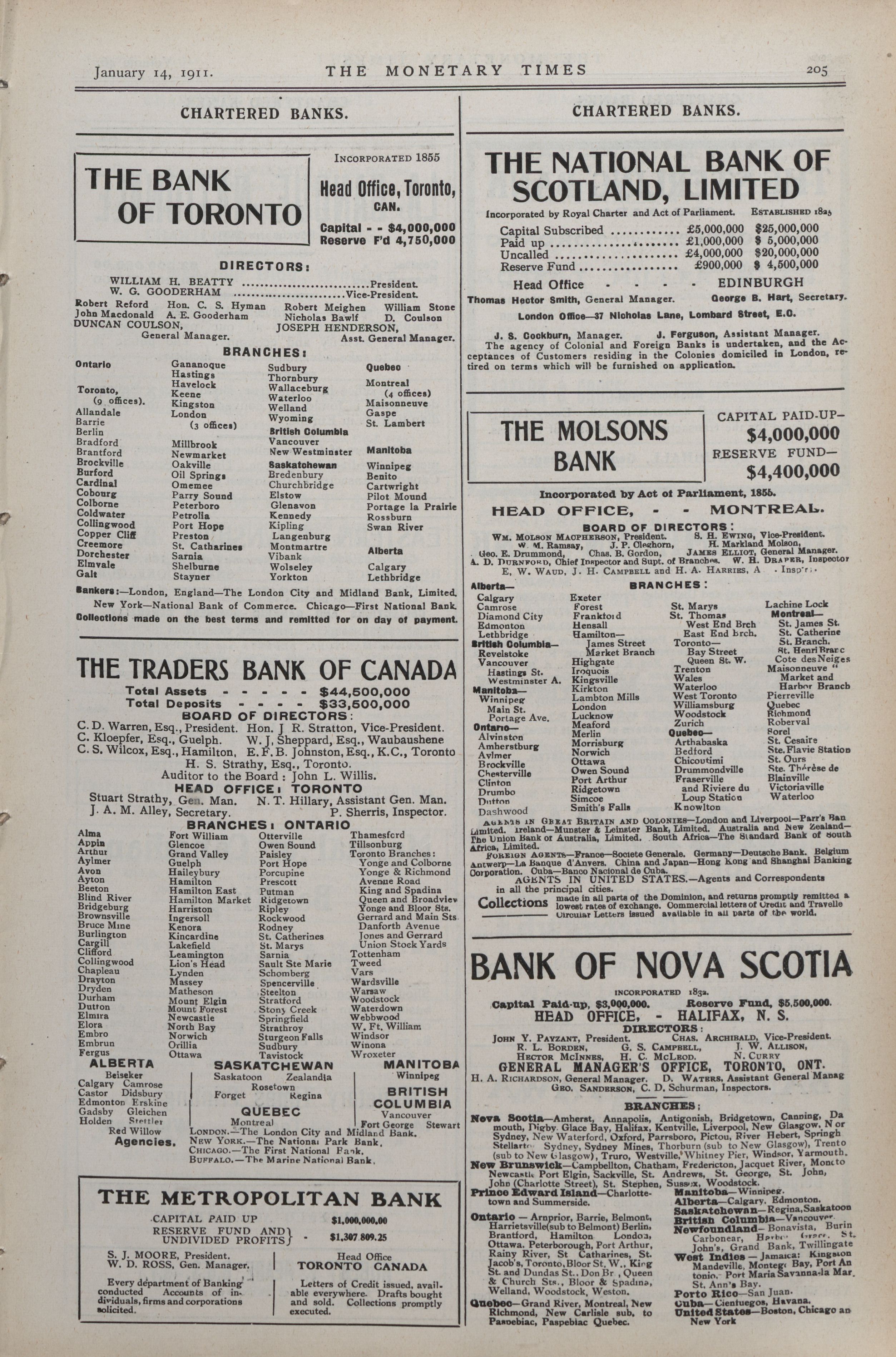 The Monetary Times, trade review and insurance chronicle. : Vol. 46 No. 2 (January 14th, 1911.)