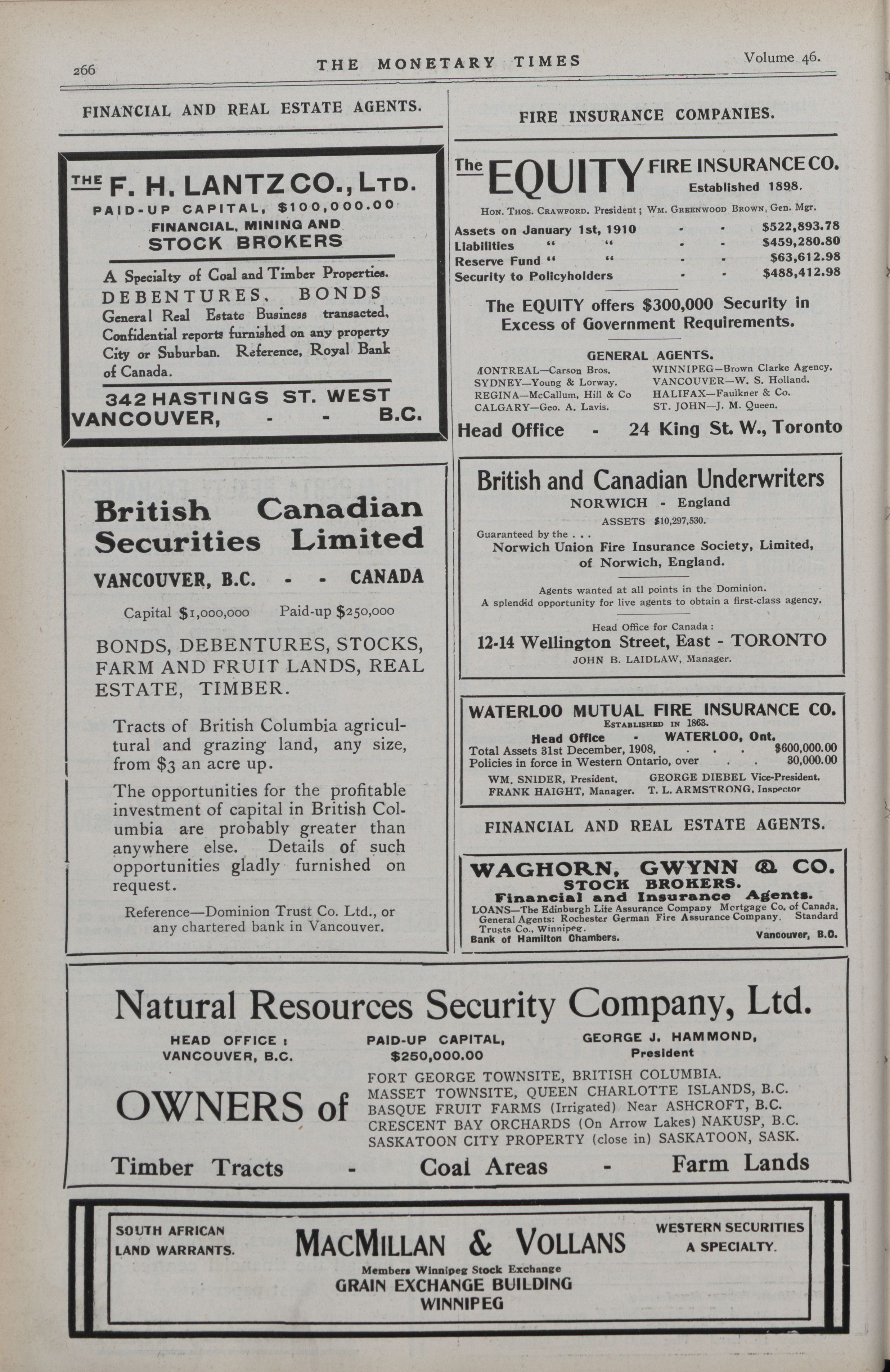 The Monetary Times, trade review and insurance chronicle. : Vol. 46 No. 2 (January 14th, 1911.)