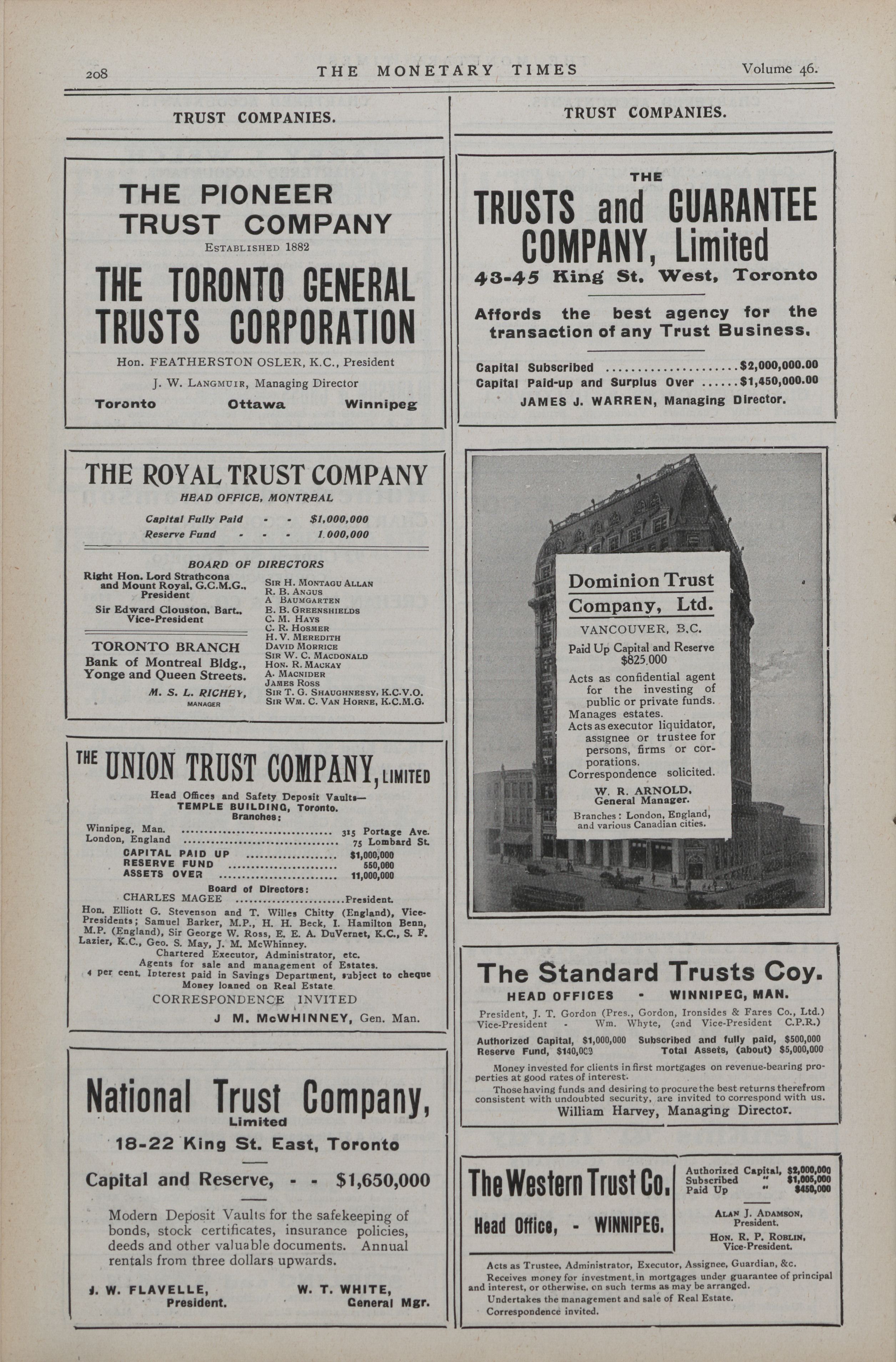 The Monetary Times, trade review and insurance chronicle. : Vol. 46 No. 2 (January 14th, 1911.)