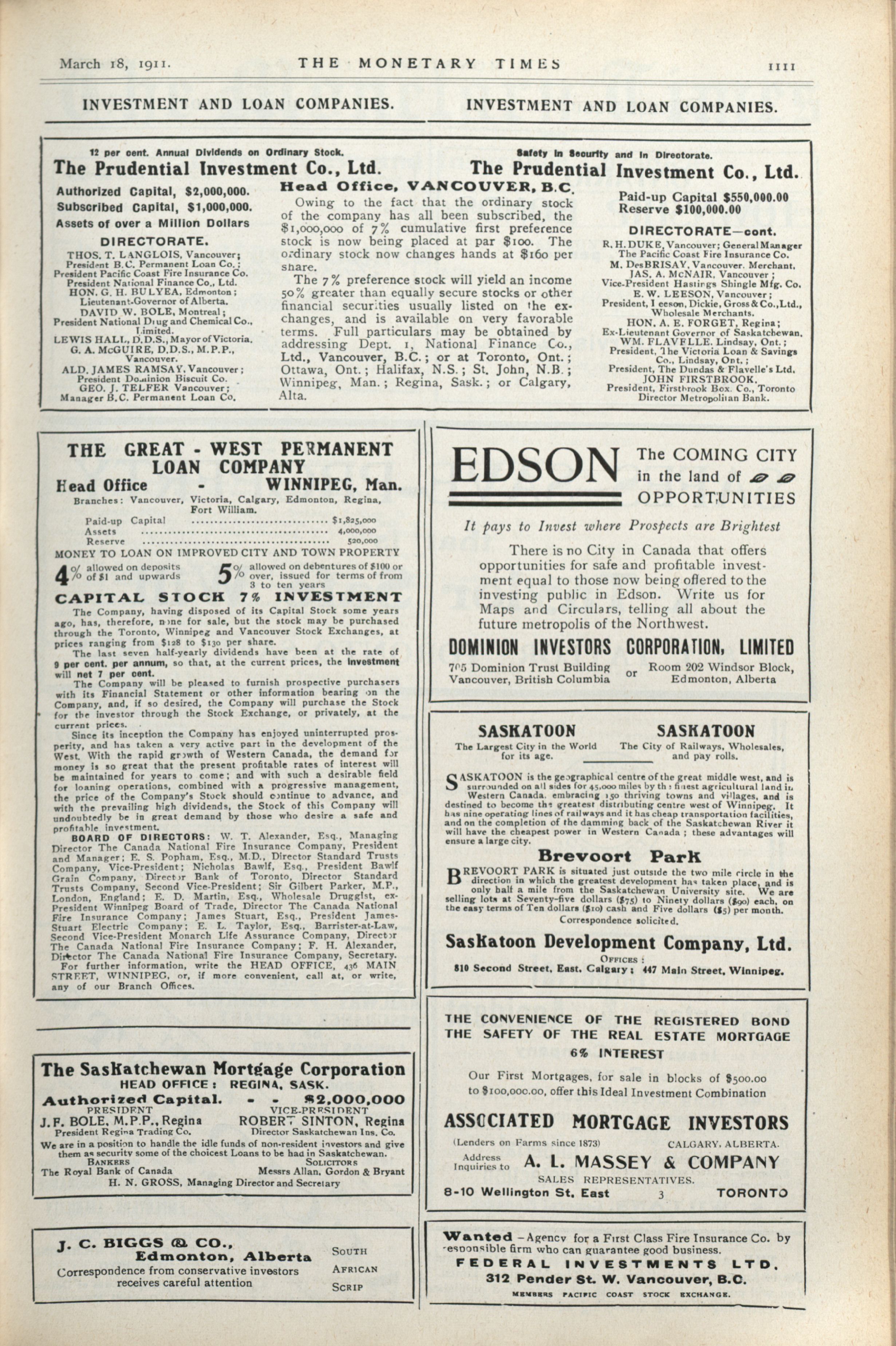 The Monetary Times, trade review and insurance chronicle. : Vol. 46 No. 11 (March 18th, 1911.)