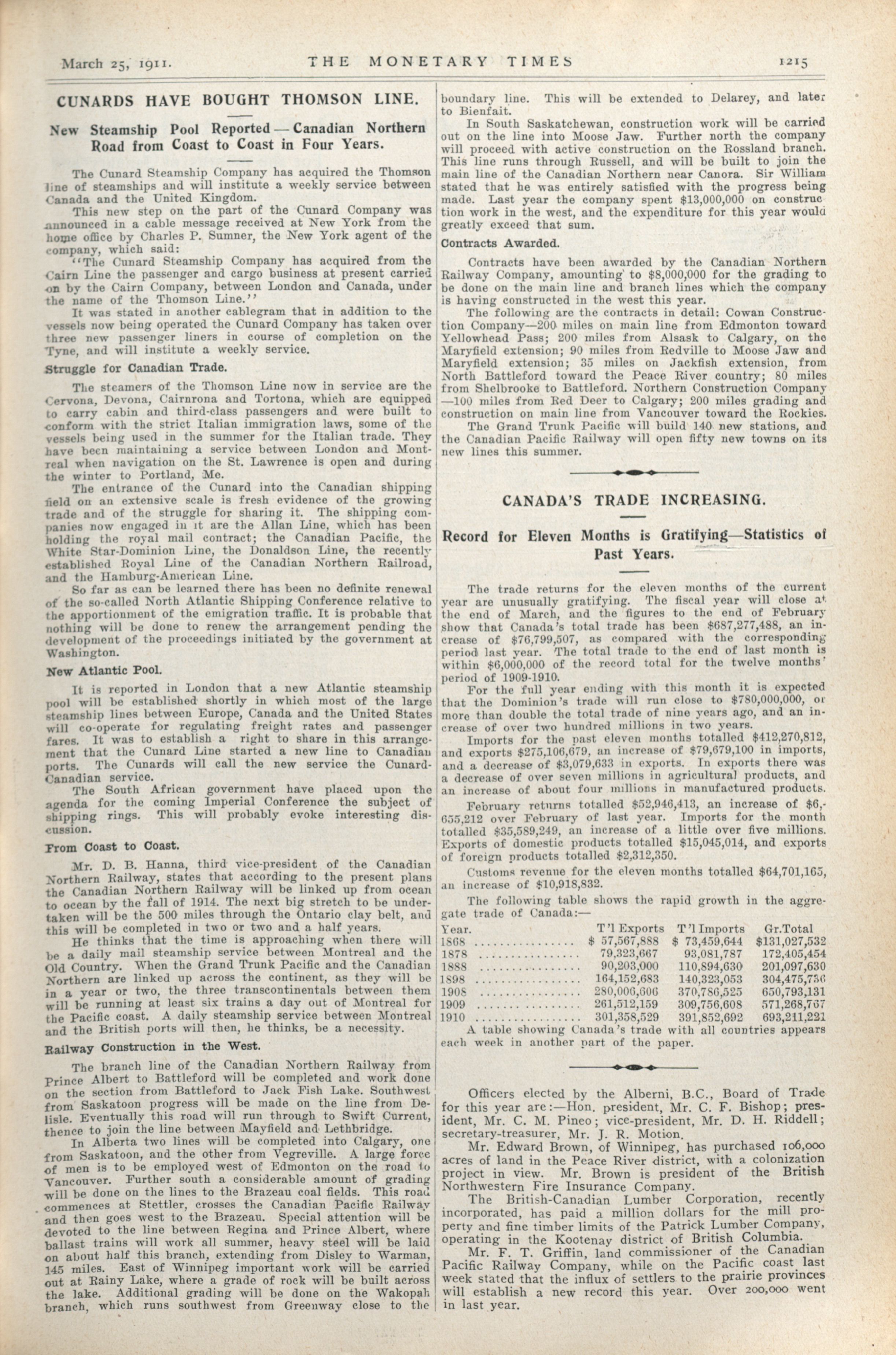 - The Monetary Times, trade review and insurance chronicle. : Vol. 46 No. 12 (March 25th, 1911.)