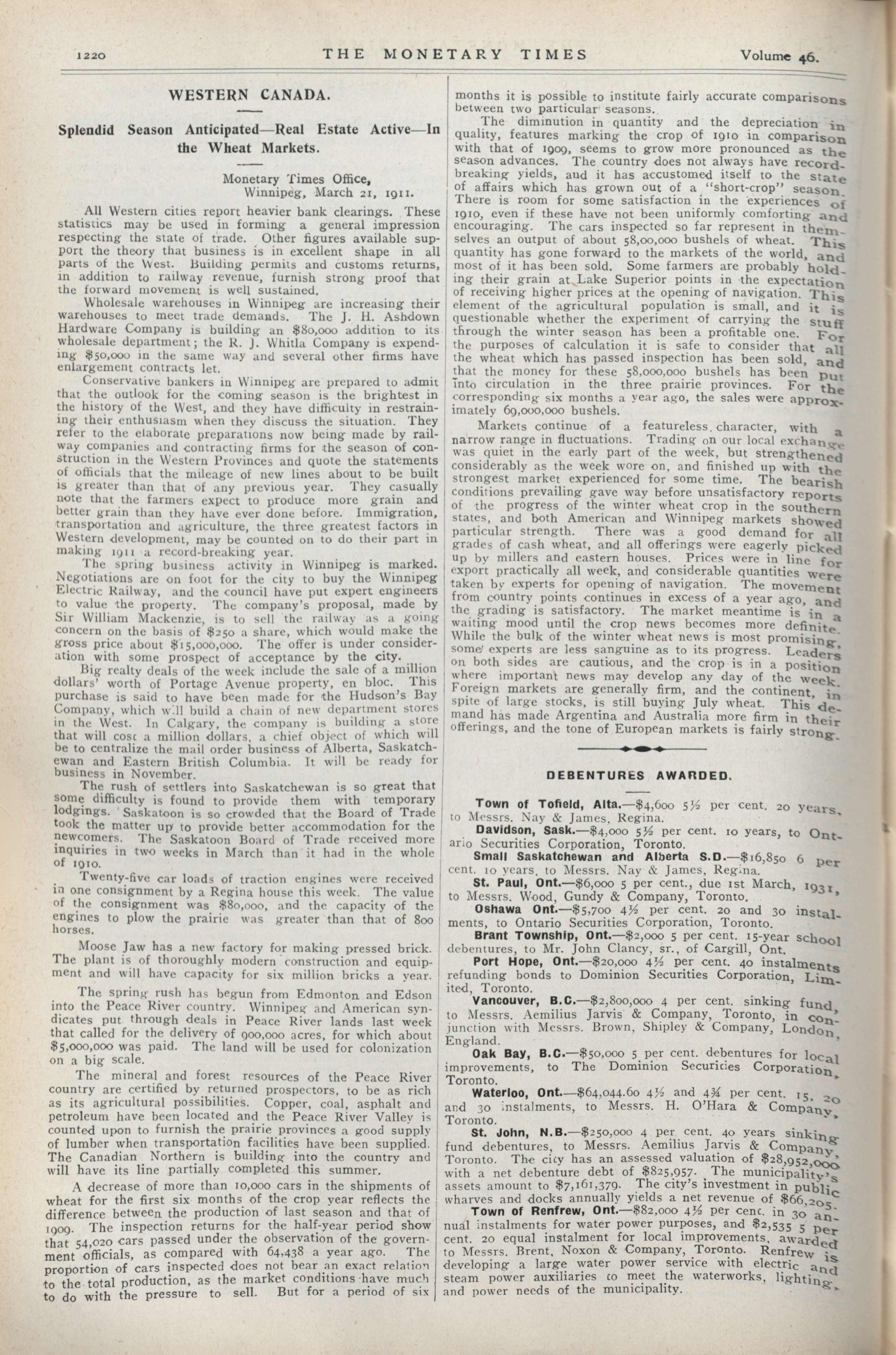 - The Monetary Times, trade review and insurance chronicle. : Vol. 46 No. 12 (March 25th, 1911.)