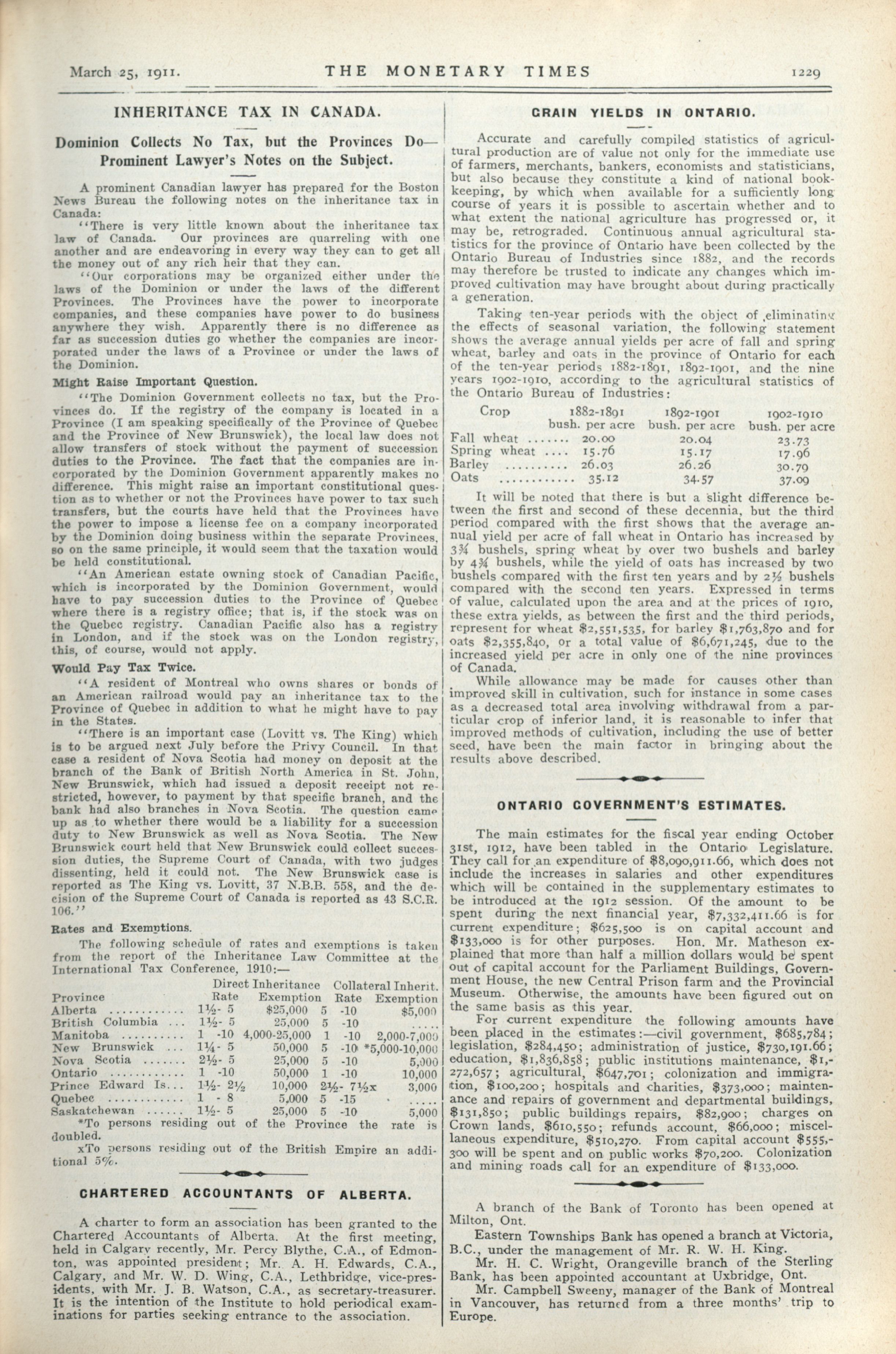 - The Monetary Times, trade review and insurance chronicle. : Vol. 46 No. 12 (March 25th, 1911.)