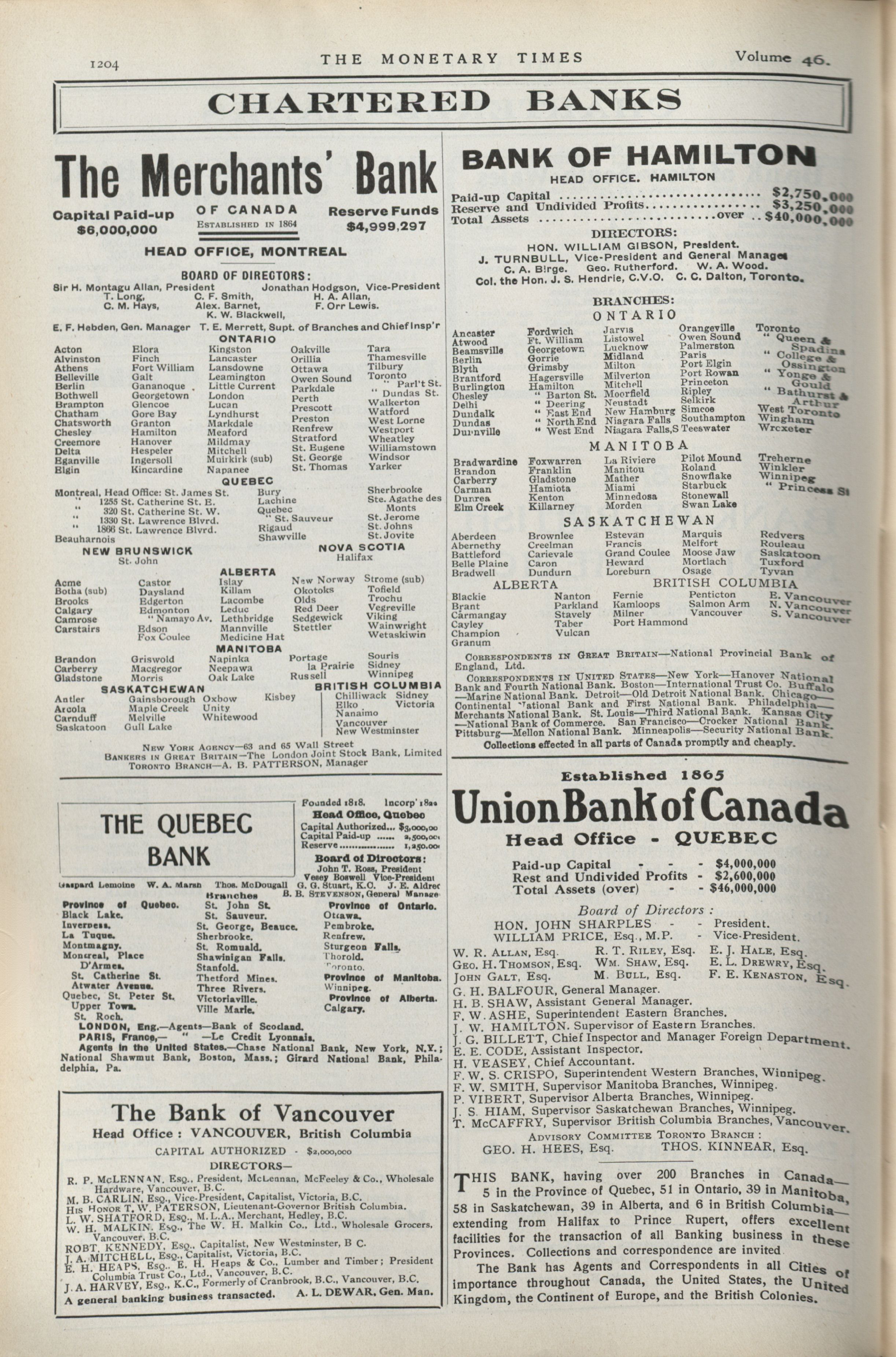 - The Monetary Times, trade review and insurance chronicle. : Vol. 46 No. 12 (March 25th, 1911.)