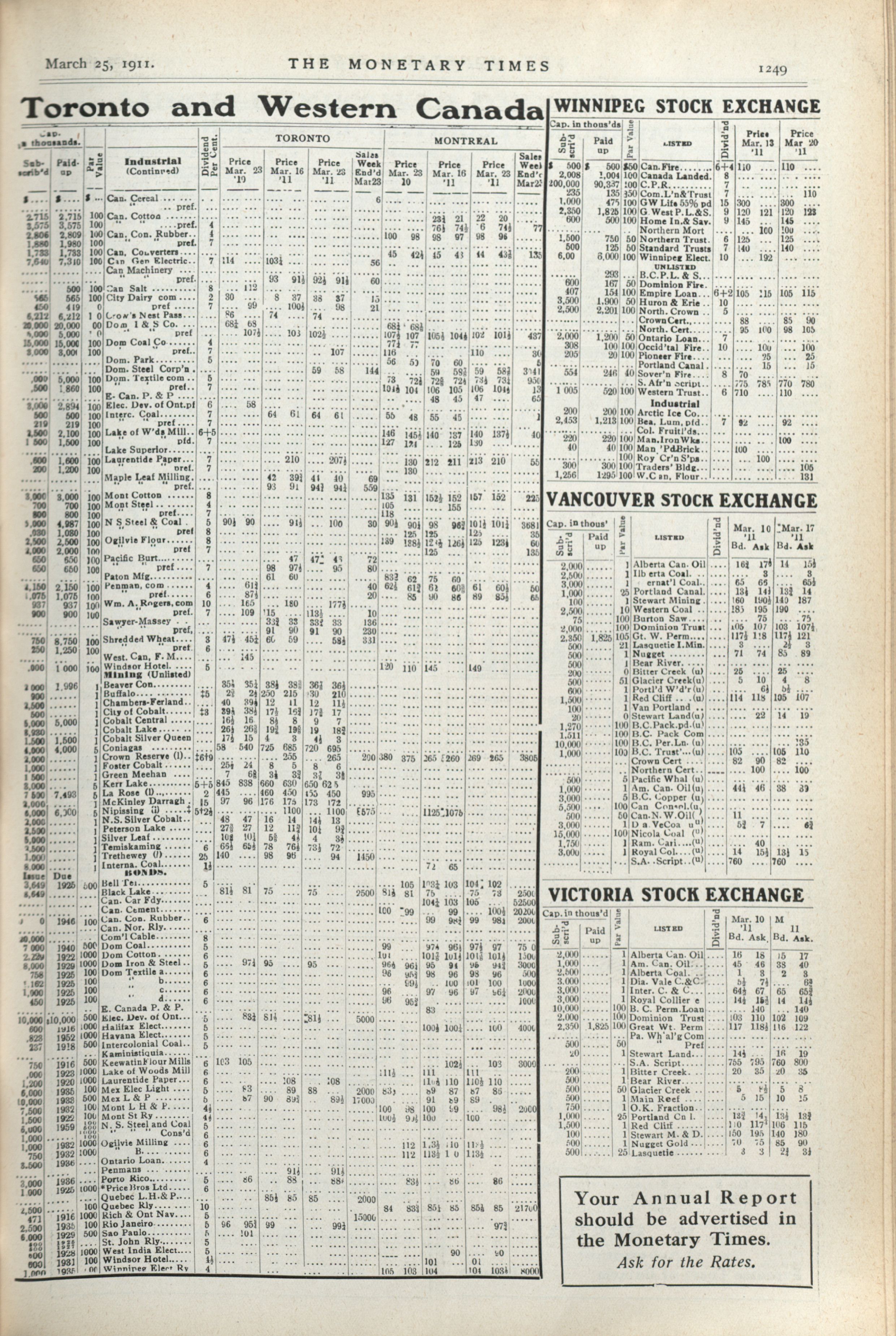 - The Monetary Times, trade review and insurance chronicle. : Vol. 46 No. 12 (March 25th, 1911.)
