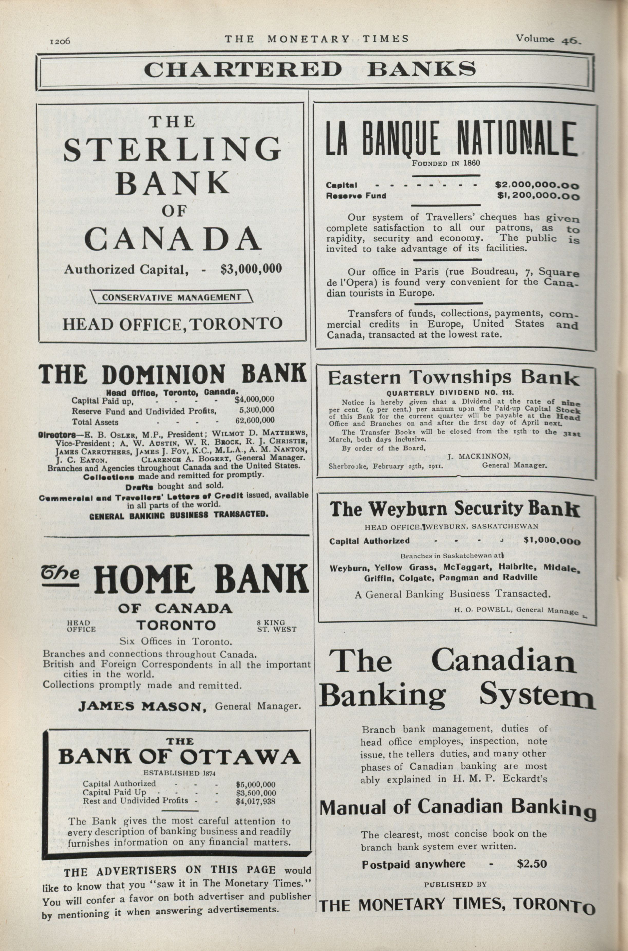 - The Monetary Times, trade review and insurance chronicle. : Vol. 46 No. 12 (March 25th, 1911.)