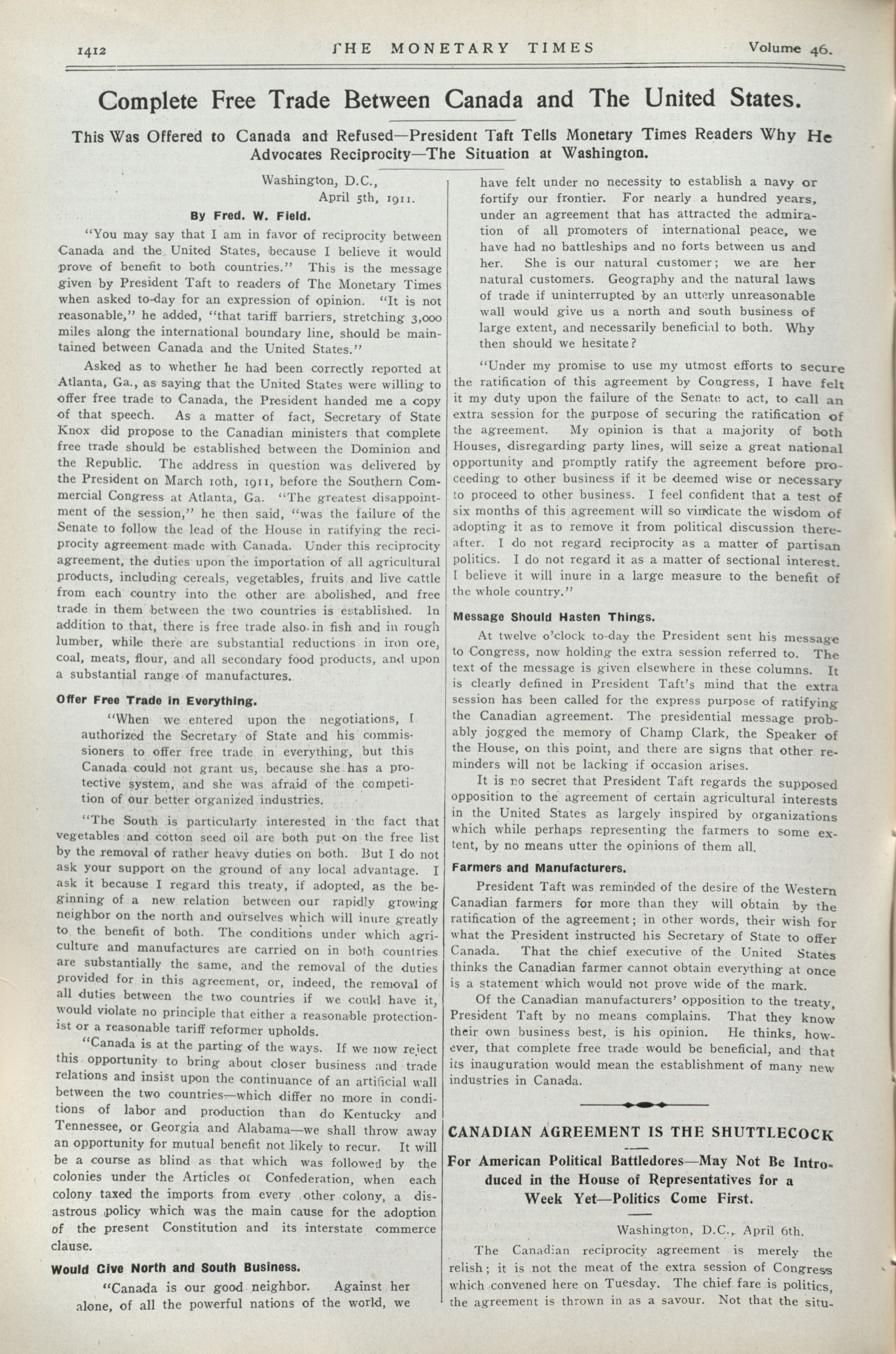 The Monetary Times, trade review and insurance chronicle. : Vol. 46 No. 14 (April 8th, 1911.)