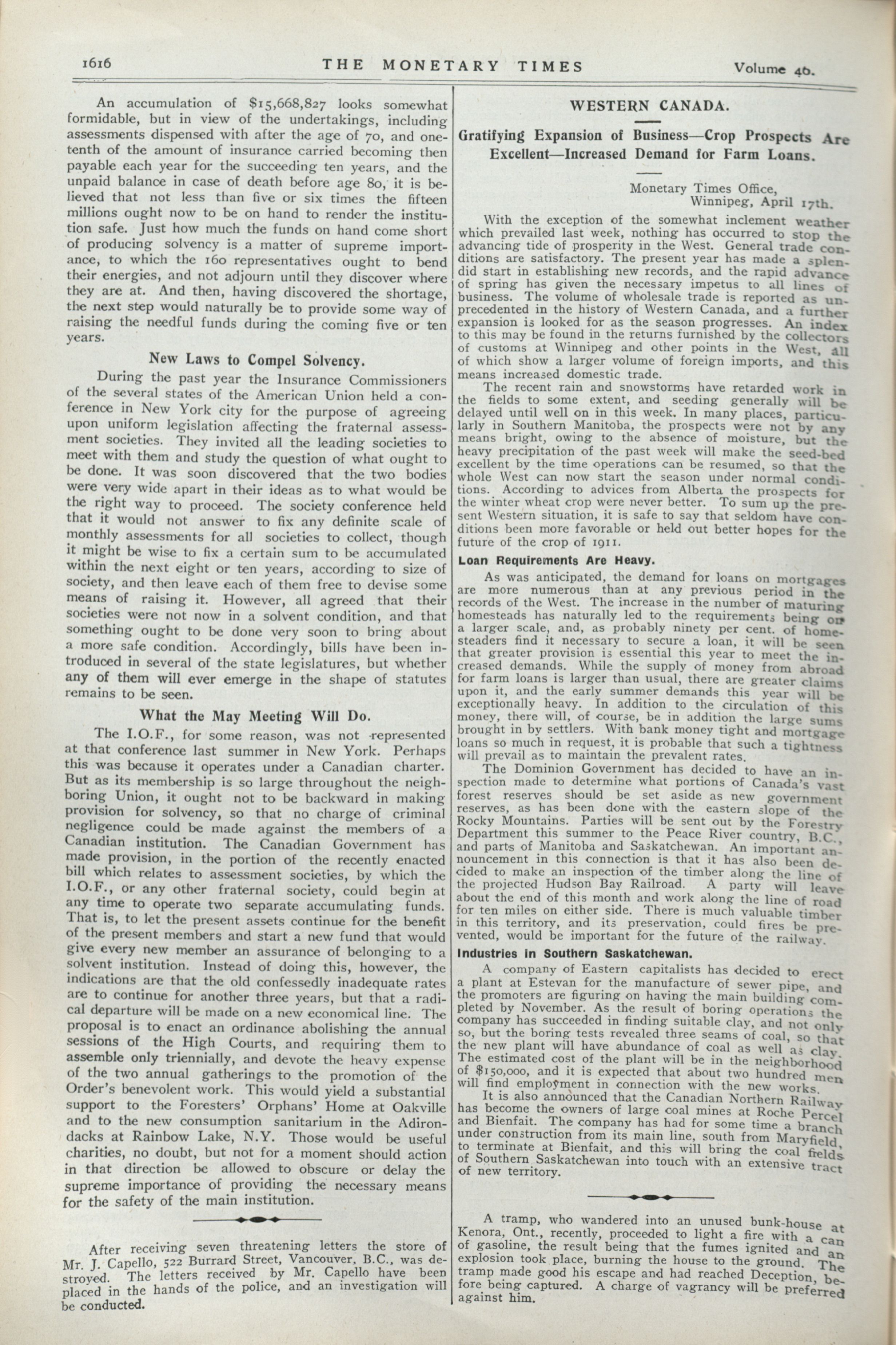 - The Monetary Times, trade review and insurance chronicle. : Vol. 46 No. 16 (April 22nd, 1911.)