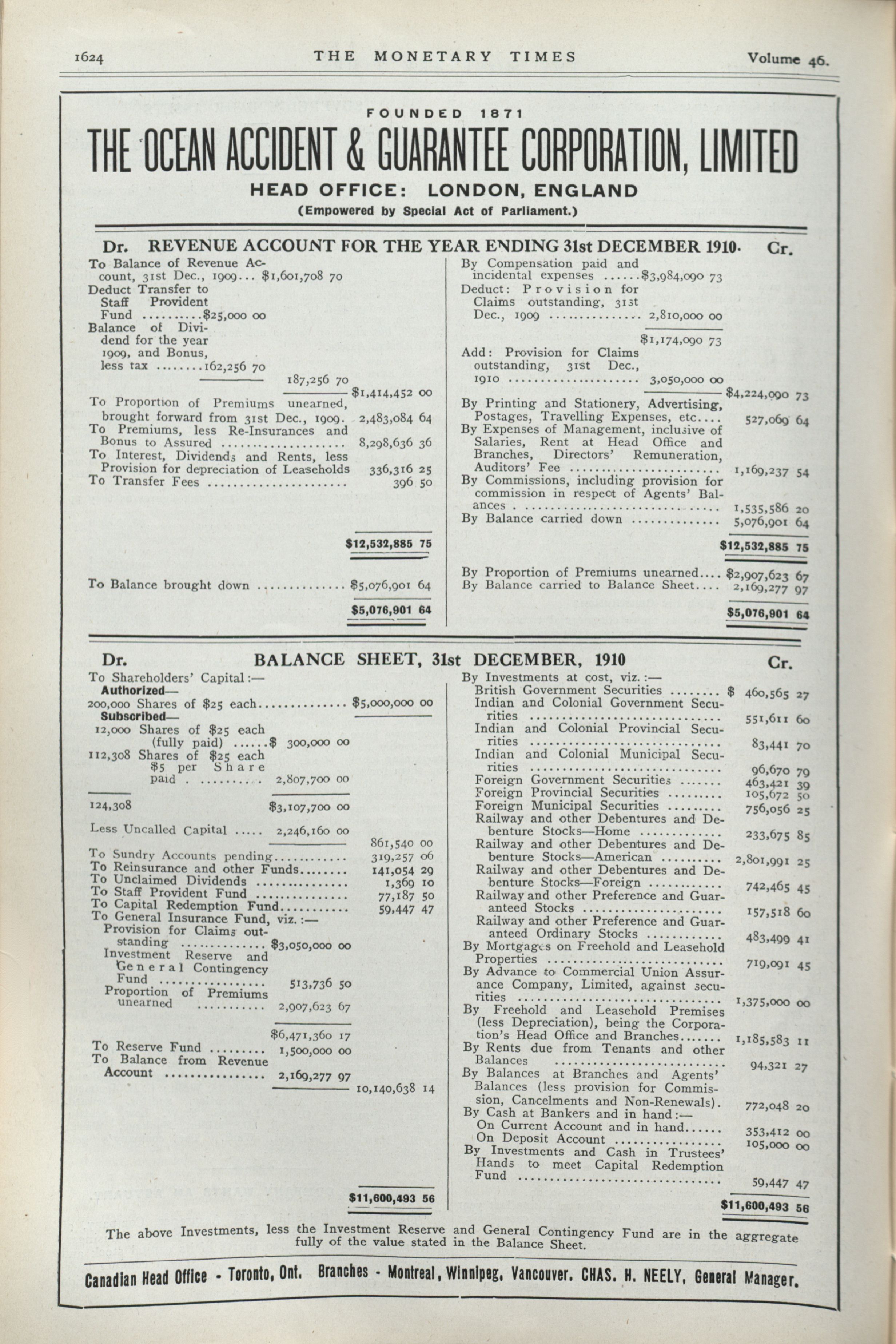 - The Monetary Times, trade review and insurance chronicle. : Vol. 46 No. 16 (April 22nd, 1911.)
