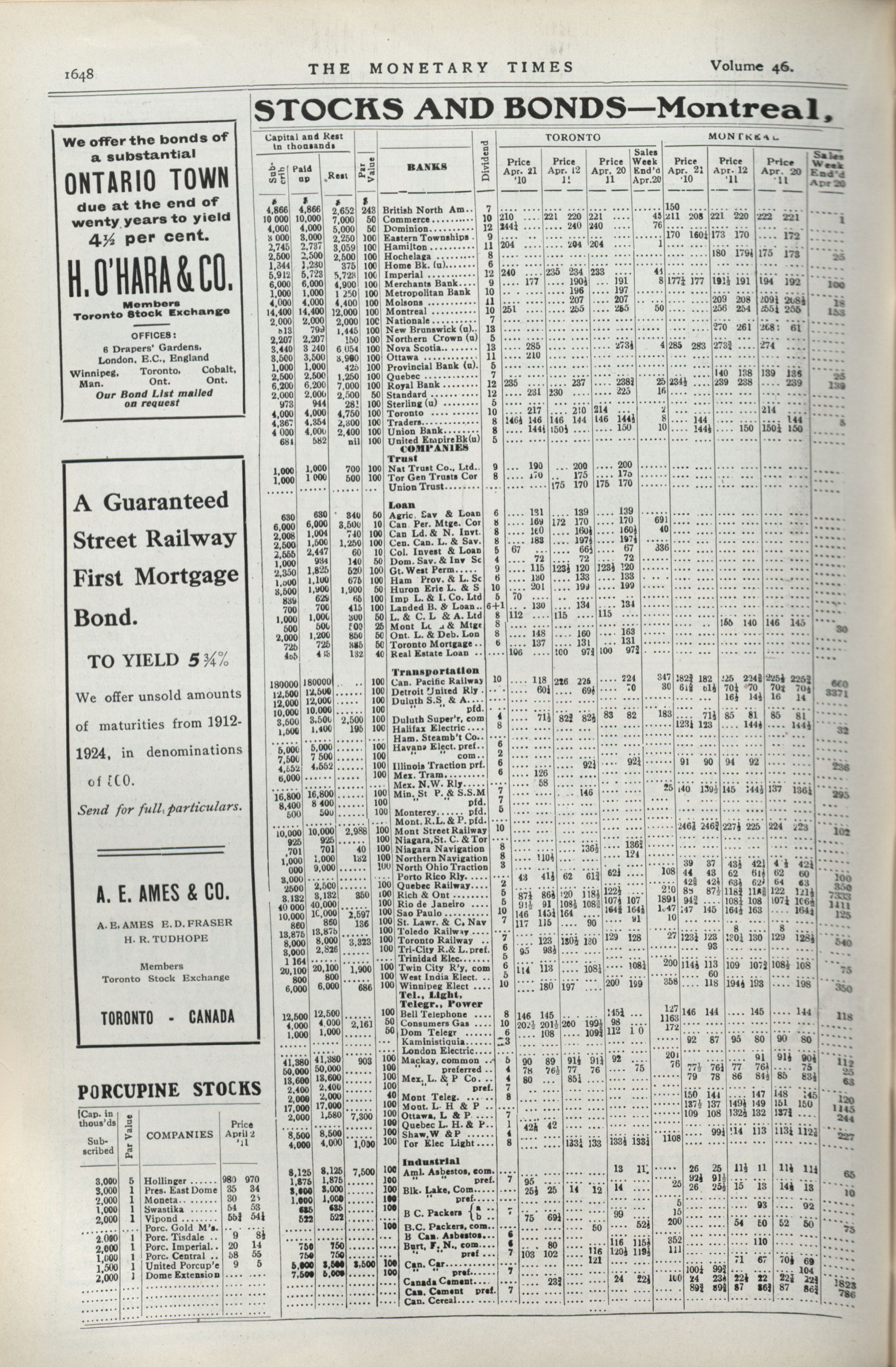 - The Monetary Times, trade review and insurance chronicle. : Vol. 46 No. 16 (April 22nd, 1911.)