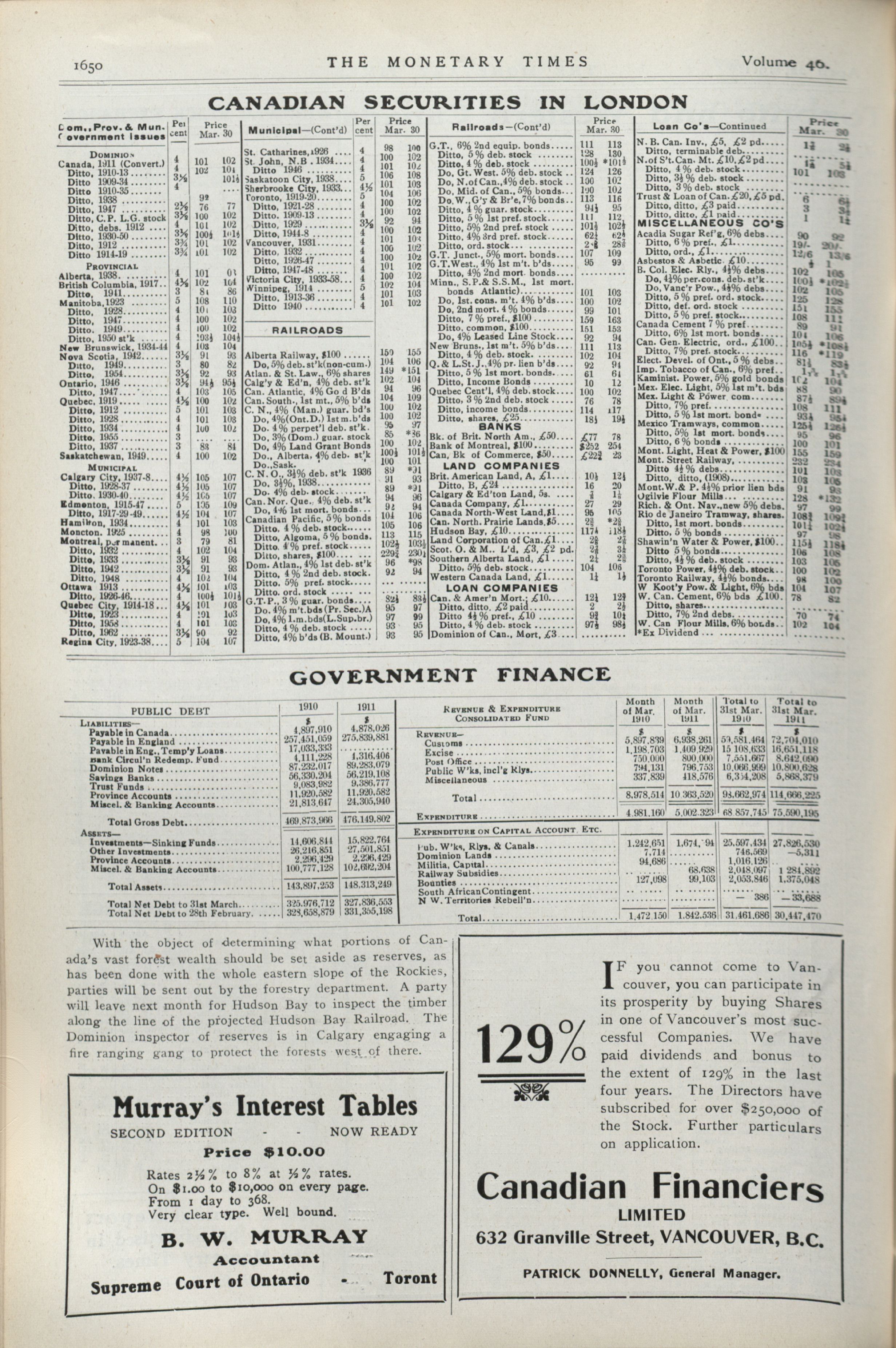 - The Monetary Times, trade review and insurance chronicle. : Vol. 46 No. 16 (April 22nd, 1911.)