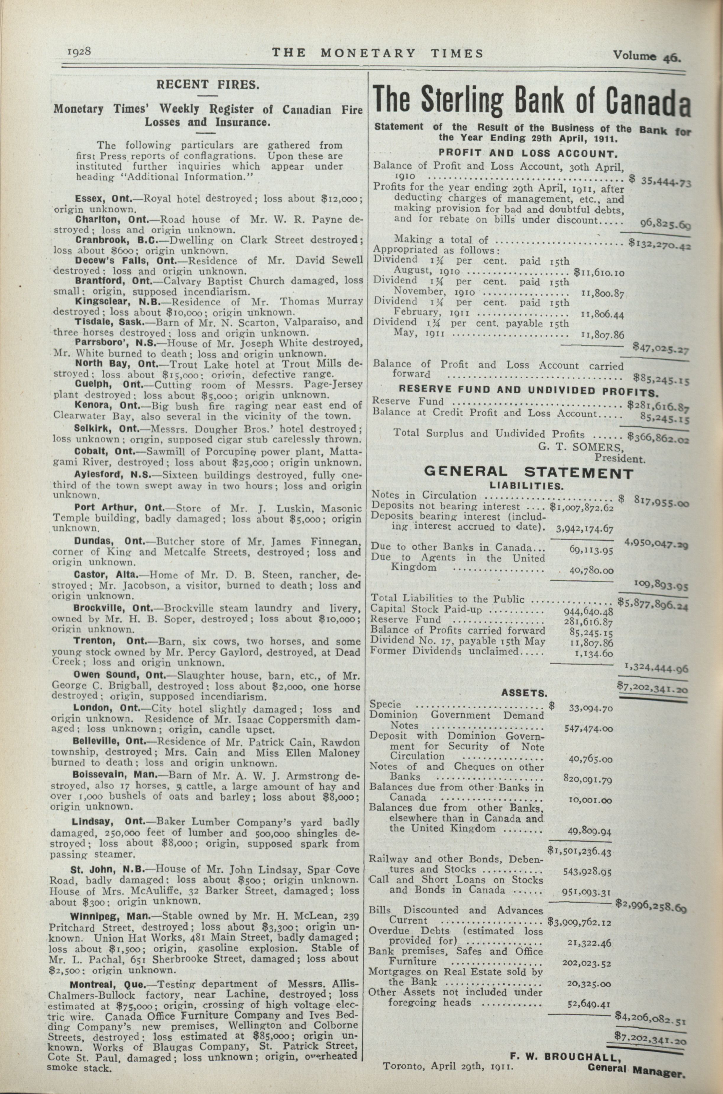 - The Monetary Times, trade review and insurance chronicle. : Vol. 46 No. 19 (May 13th, 1911.)