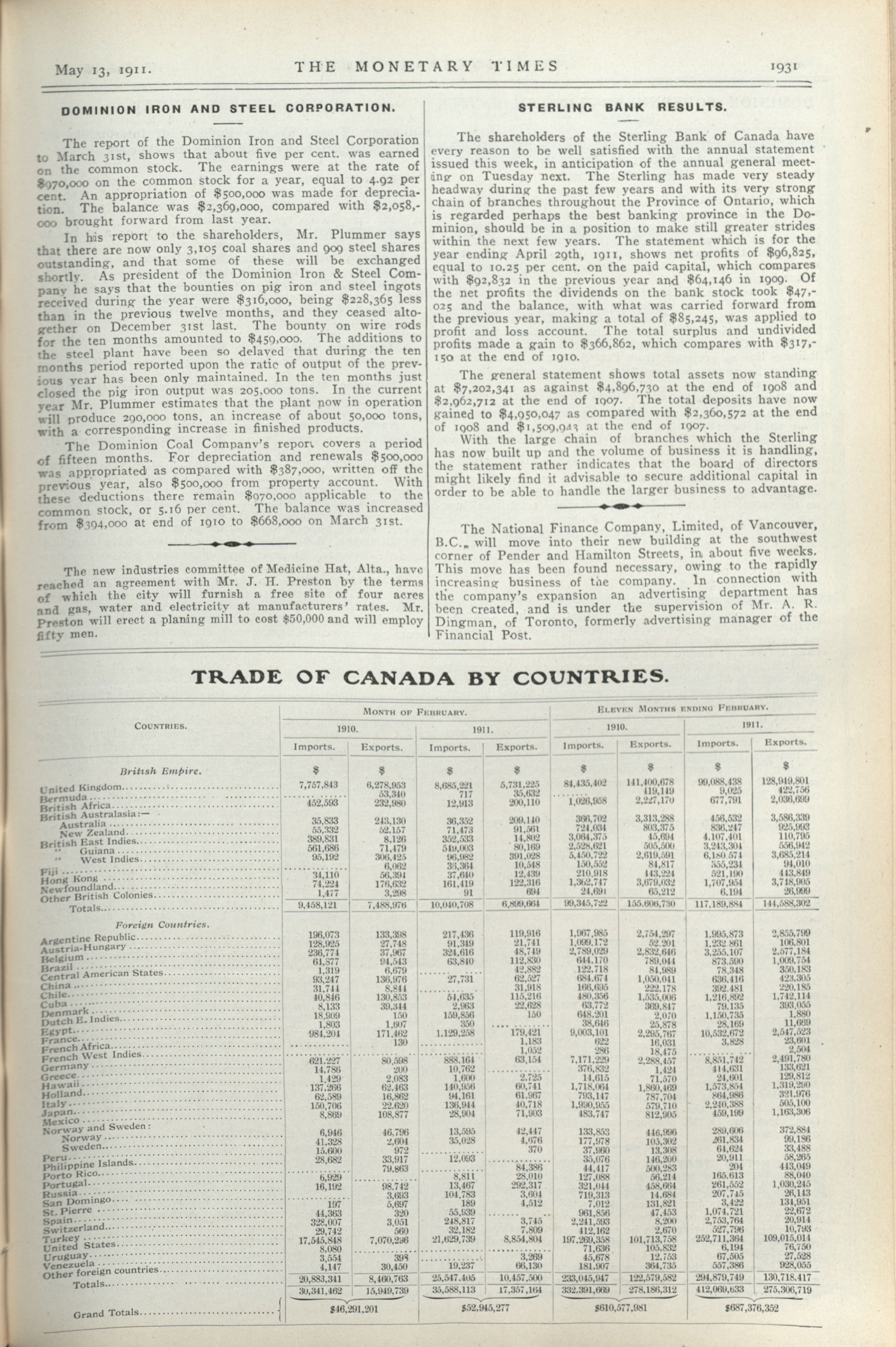 - The Monetary Times, trade review and insurance chronicle. : Vol. 46 No. 19 (May 13th, 1911.)