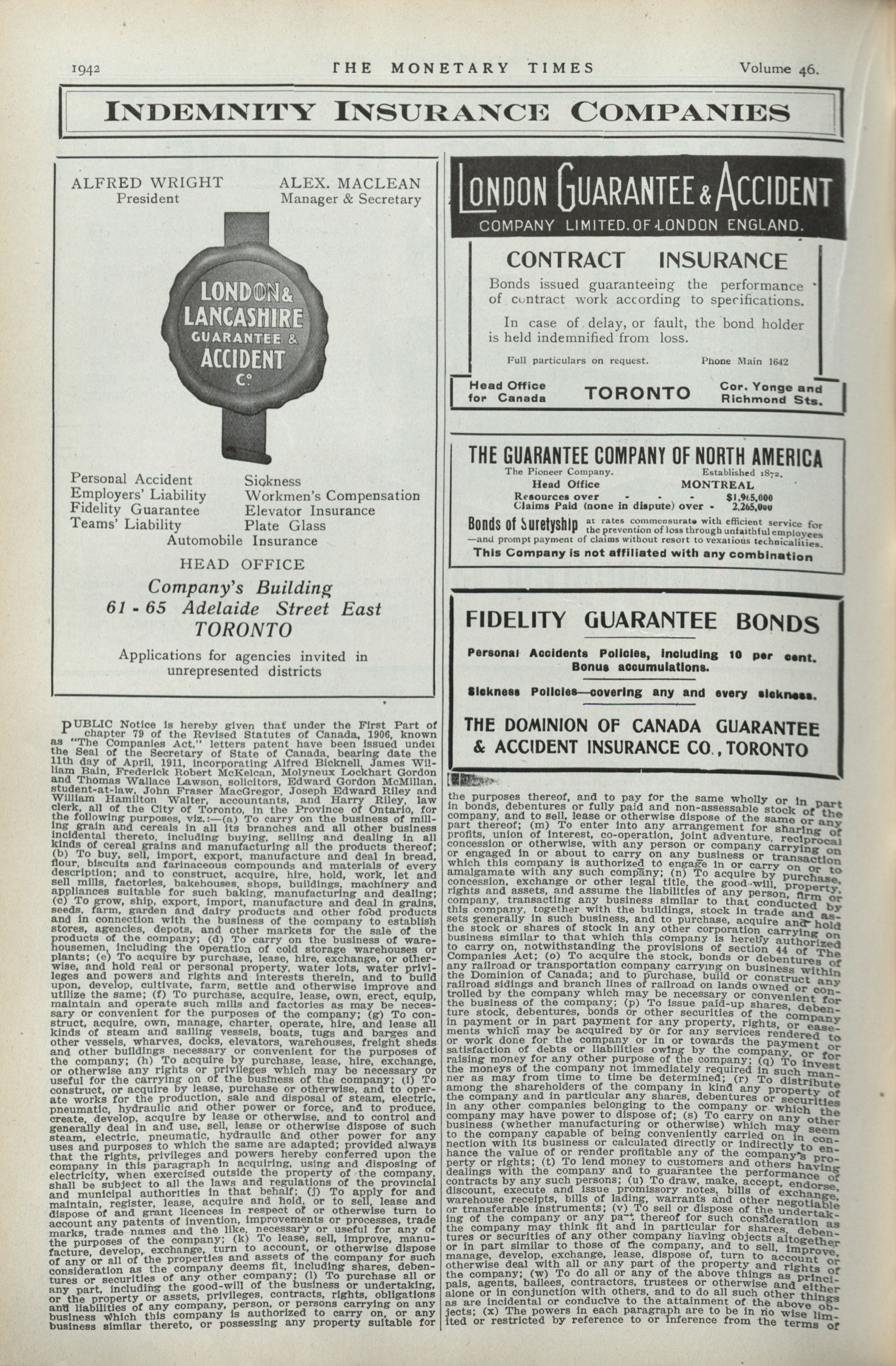 The monetary times, trade review and insurance chronicle : Vol. 46 No. 19 (May 13th, 1911.)