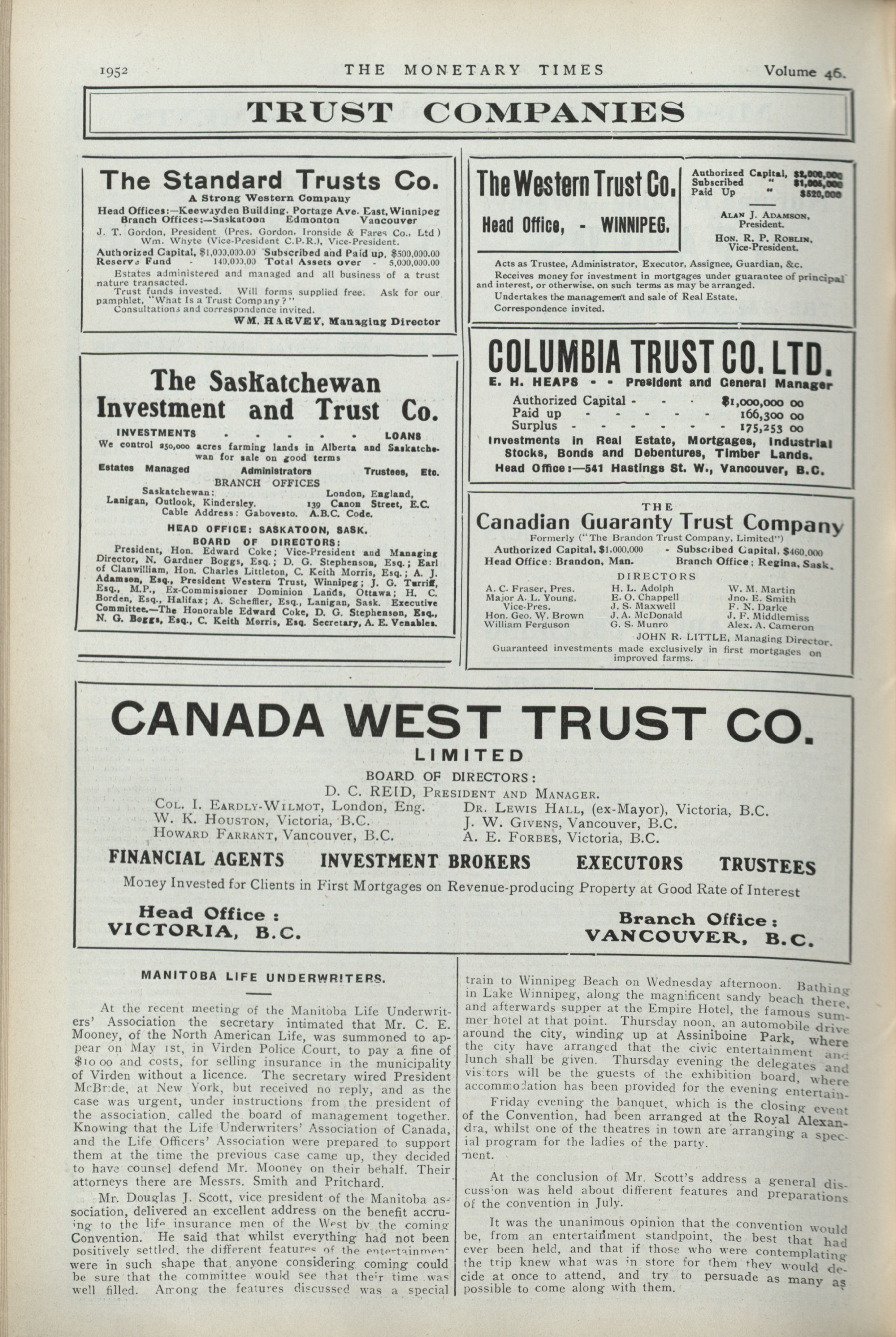 - The Monetary Times, trade review and insurance chronicle. : Vol. 46 No. 19 (May 13th, 1911.)