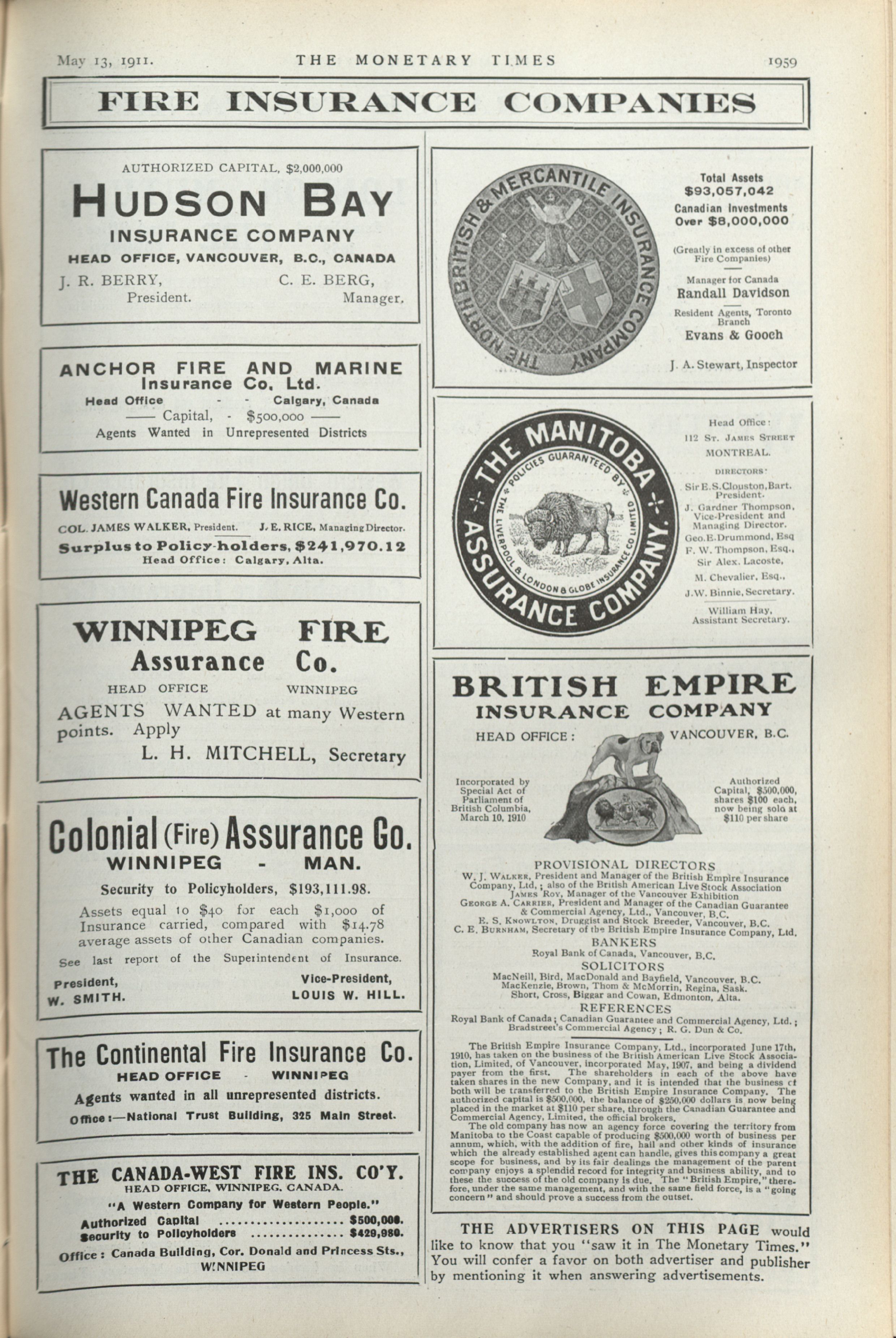 - The Monetary Times, trade review and insurance chronicle. : Vol. 46 No. 19 (May 13th, 1911.)
