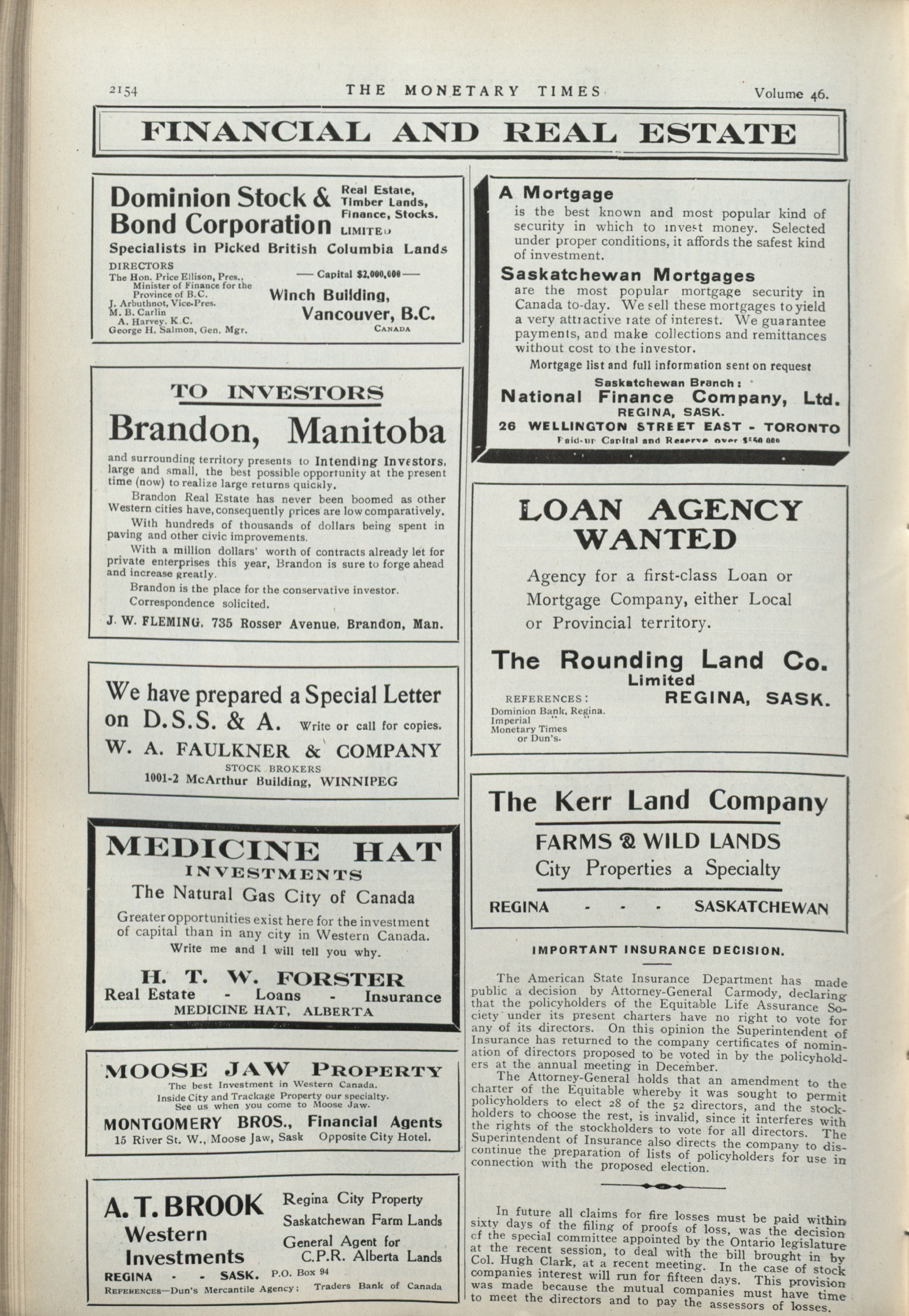 The monetary times, trade review and insurance chronicle : Vol. 46 No. 21 (May 27th, 1911.)