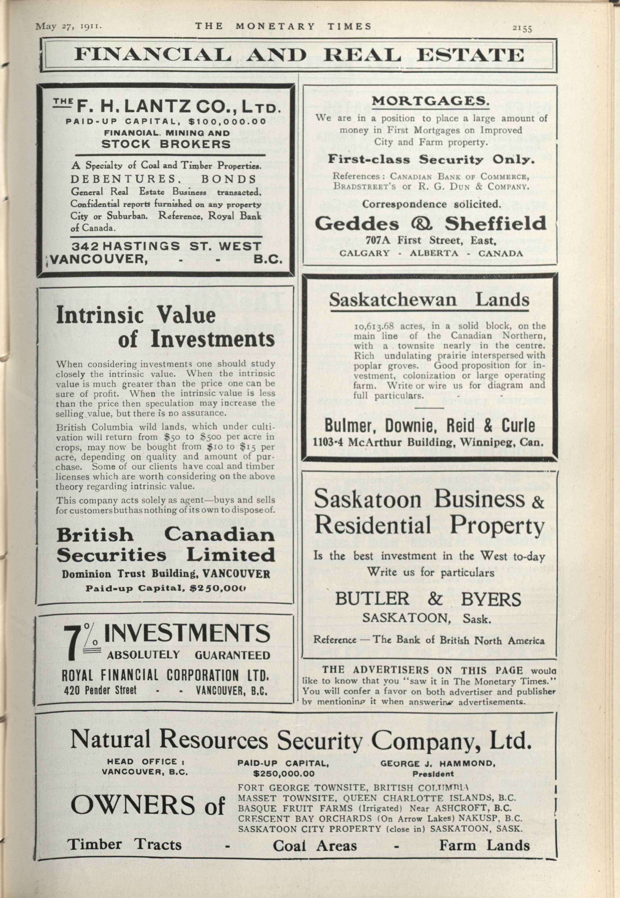 The monetary times, trade review and insurance chronicle : Vol. 46 No. 21 (May 27th, 1911.)