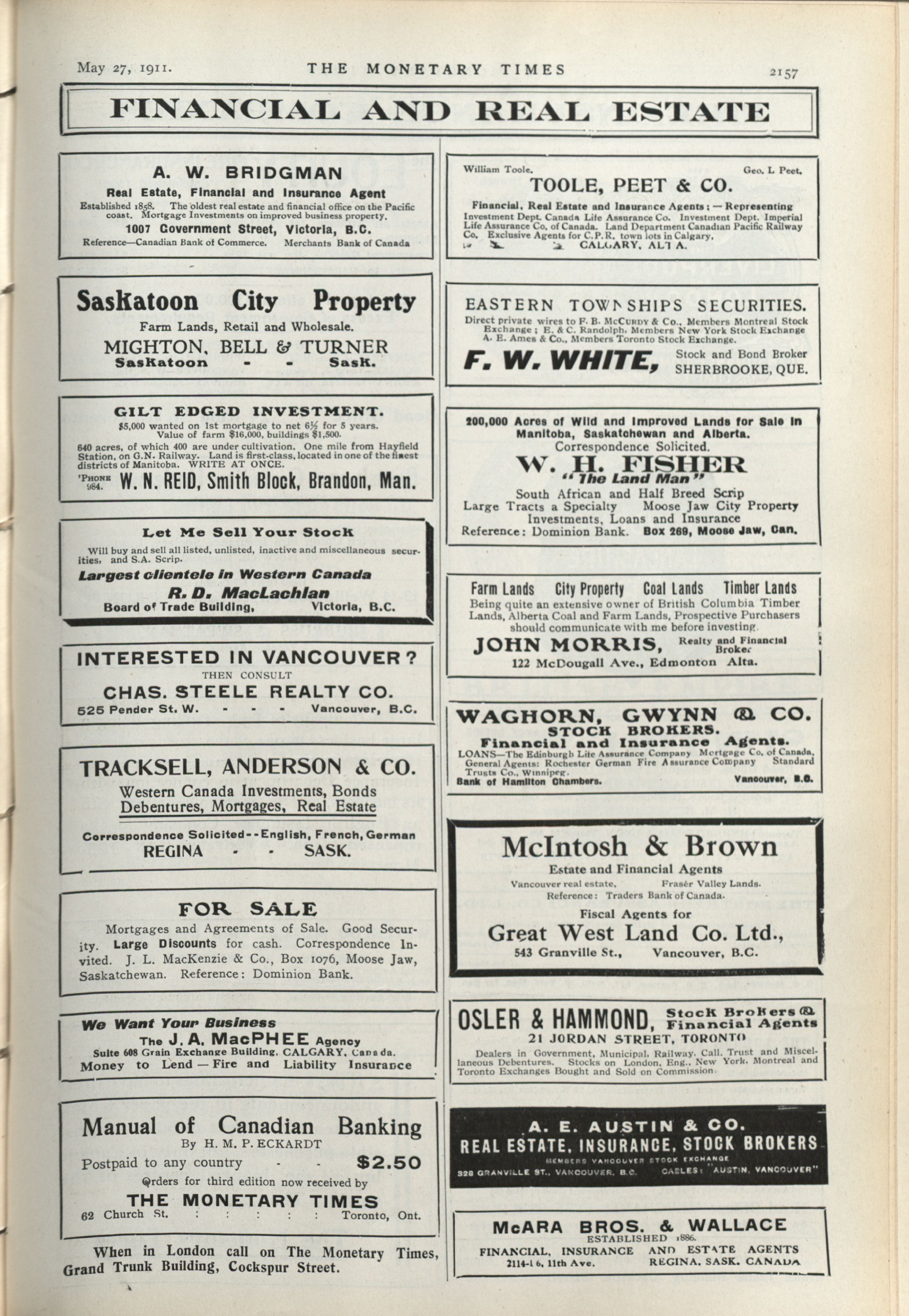 The monetary times, trade review and insurance chronicle : Vol. 46 No. 21 (May 27th, 1911.)