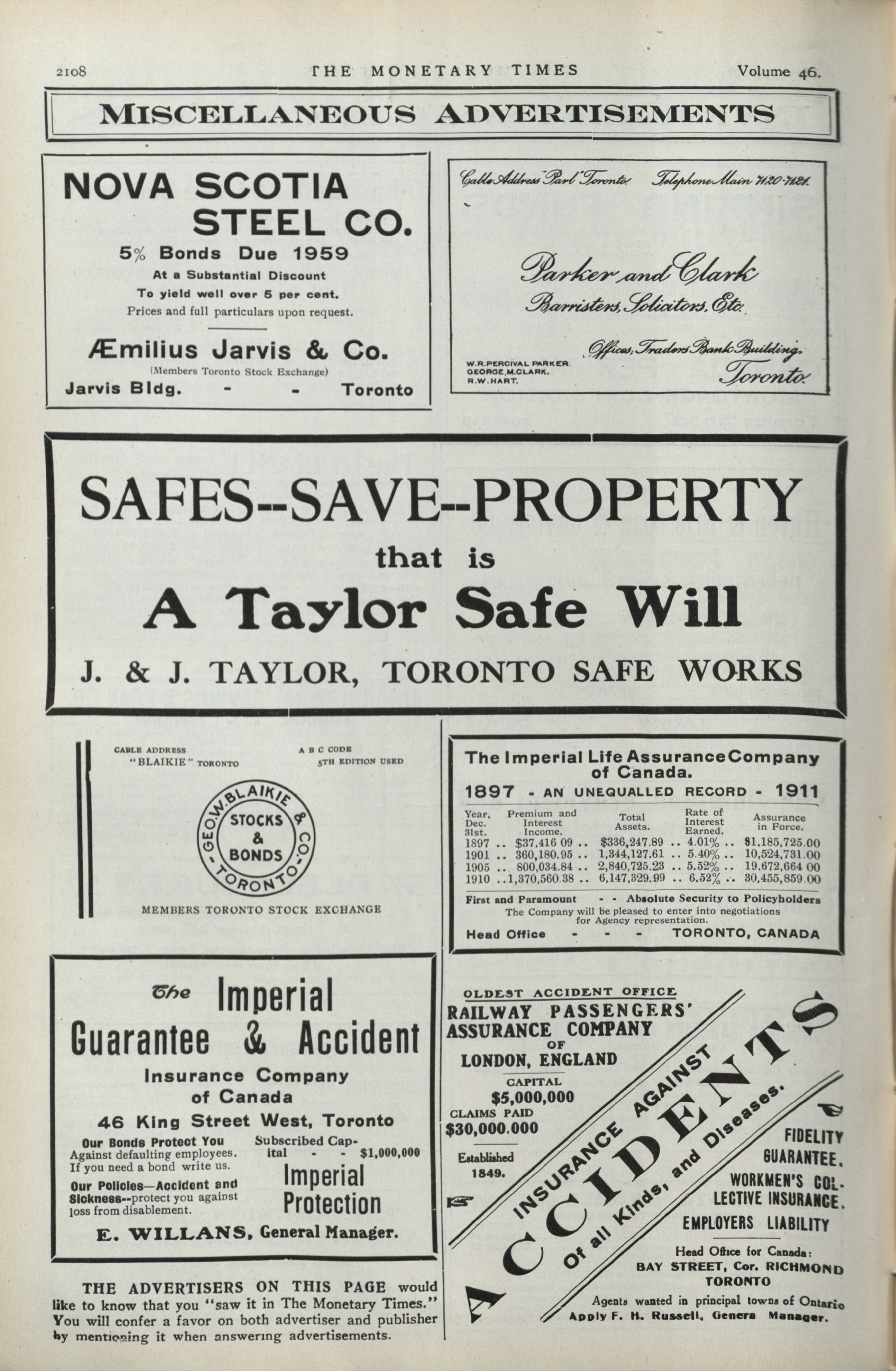 The Monetary Times, trade review and insurance chronicle. : Vol. 46 No. 21 (May 27th, 1911.)