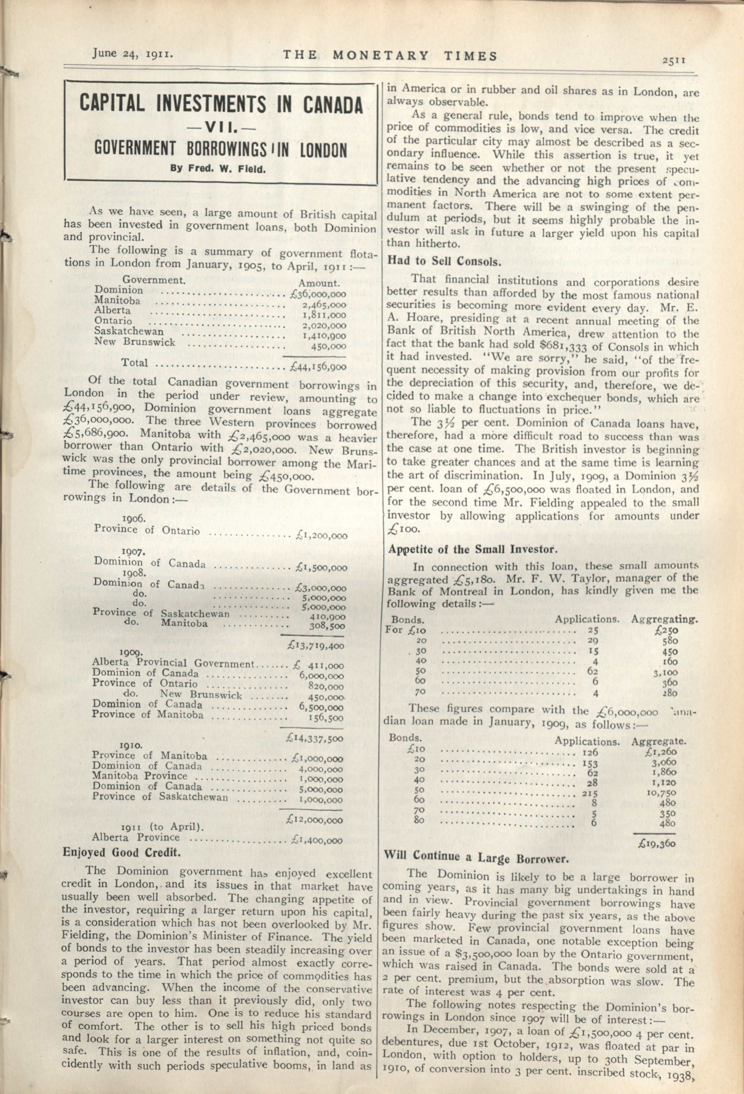 - The Monetary Times, trade review and insurance chronicle. : Vol. 46 No. 25 (June 24th, 1911.)