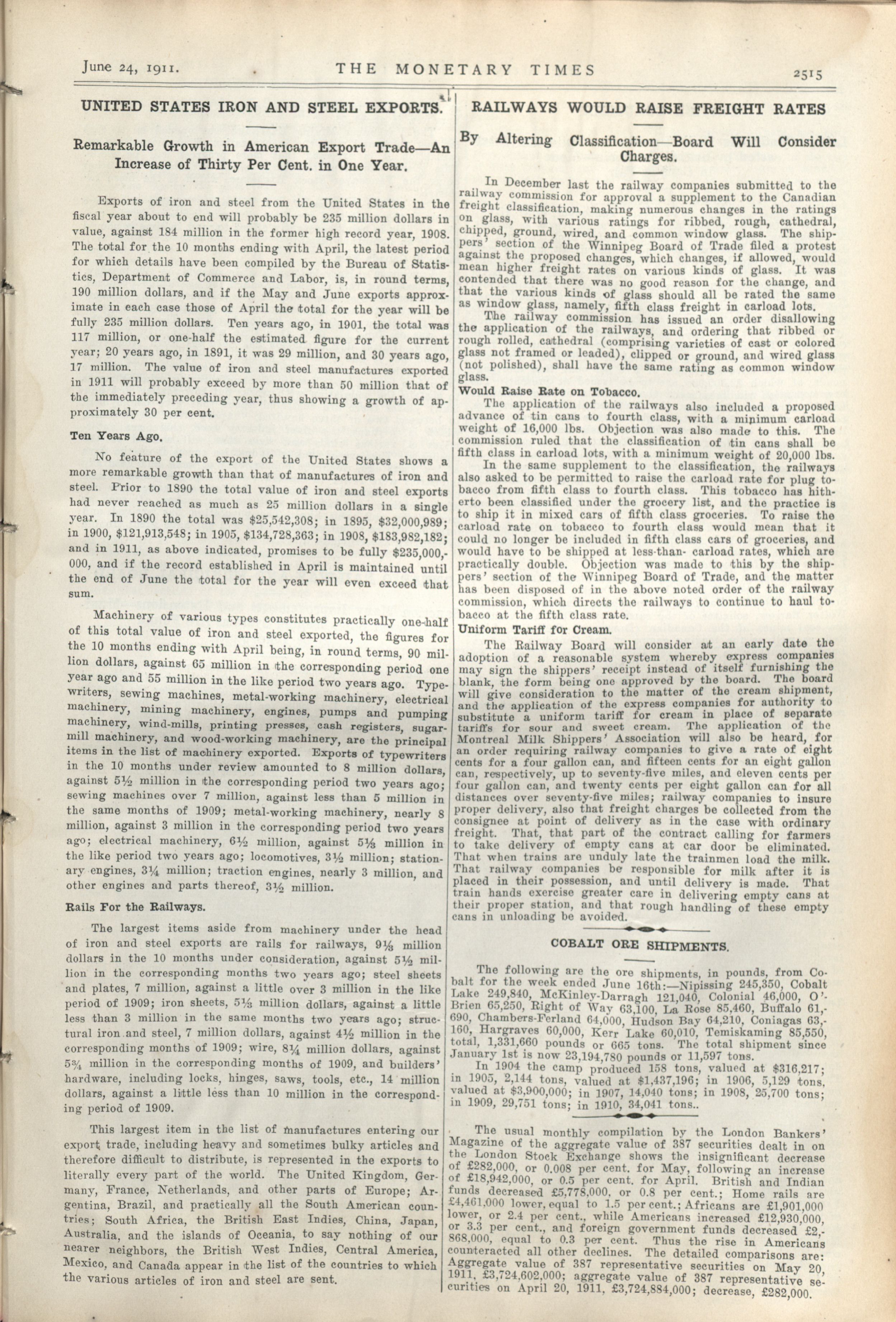 The Monetary Times, trade review and insurance chronicle. : Vol. 46 No. 25 (June 24th, 1911.)