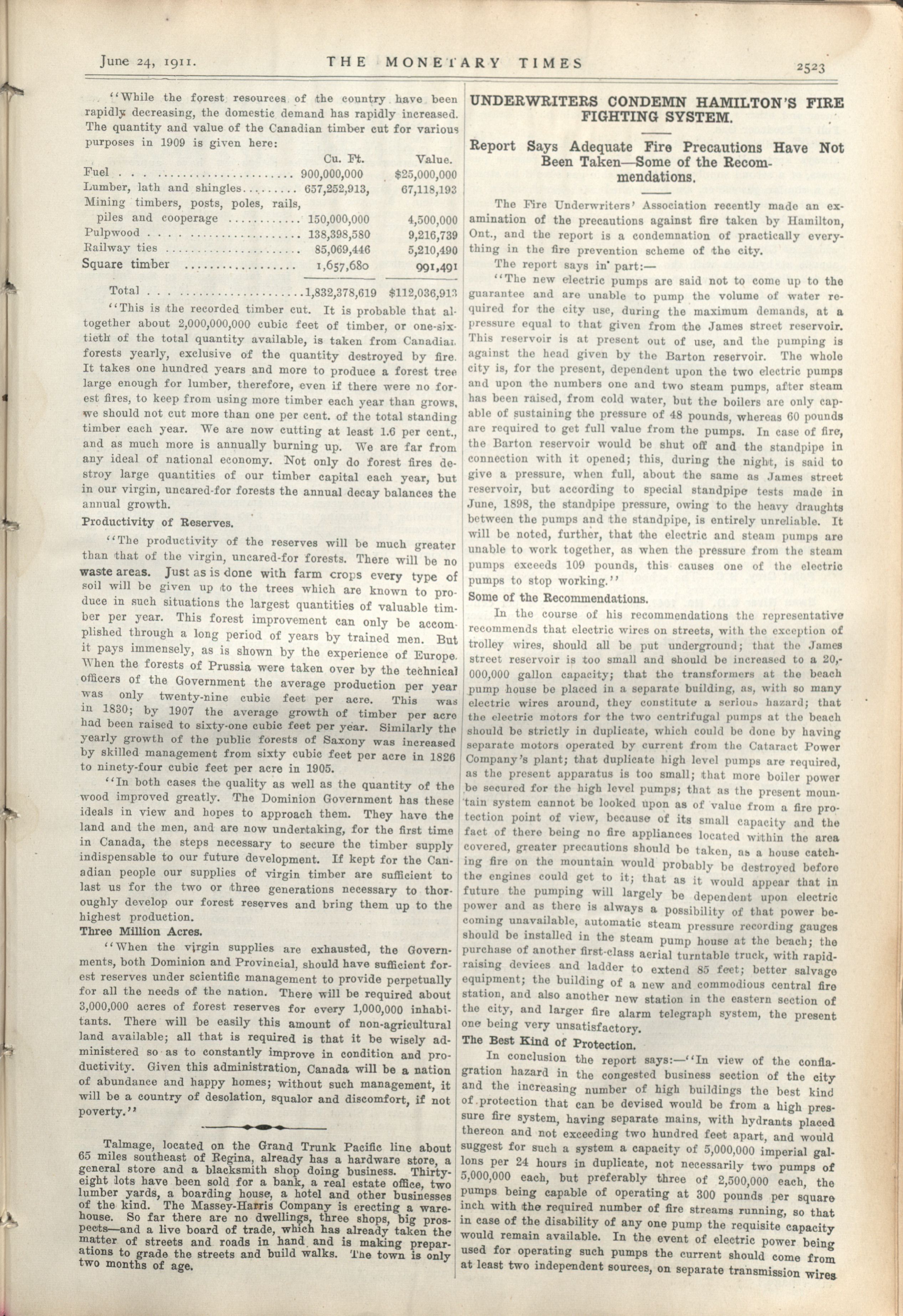 - The Monetary Times, trade review and insurance chronicle. : Vol. 46 No. 25 (June 24th, 1911.)