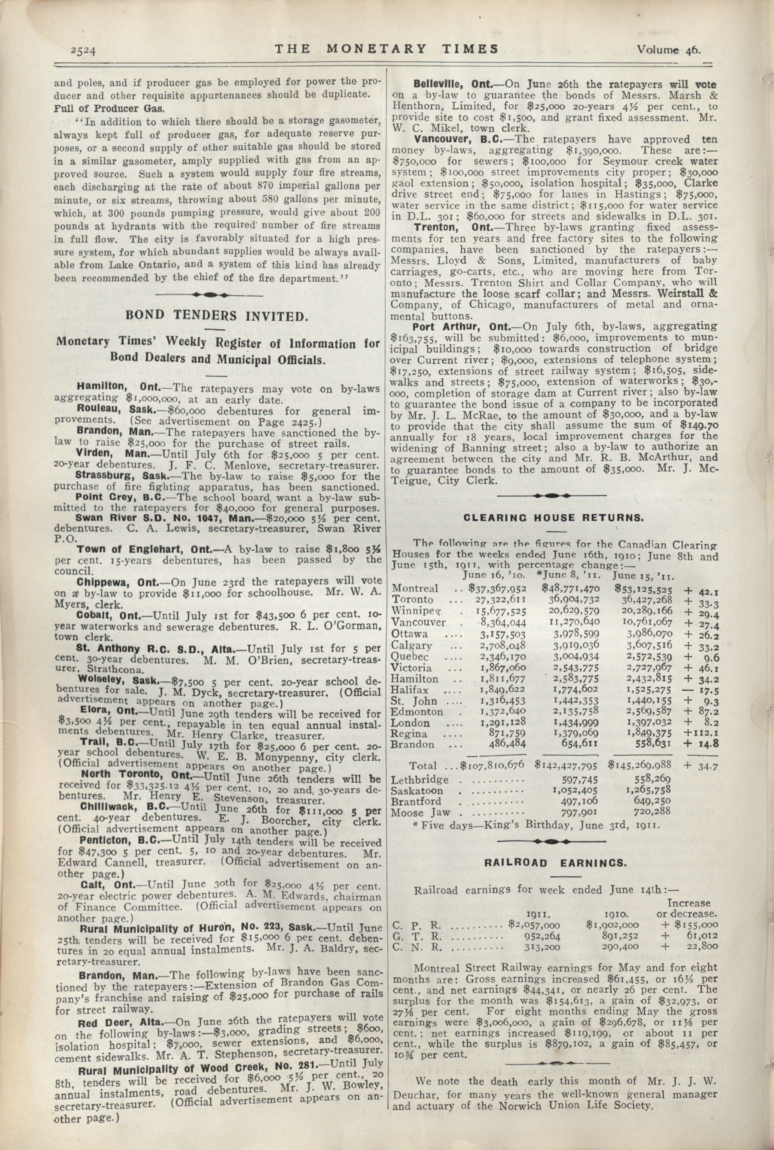 The Monetary Times, trade review and insurance chronicle. : Vol. 46 No. 25 (June 24th, 1911.)