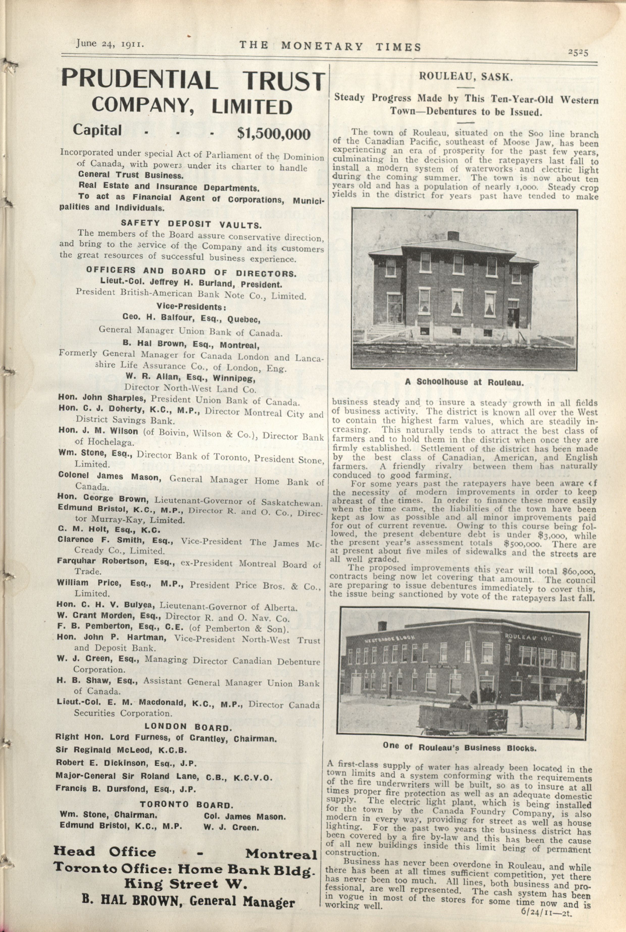 - The Monetary Times, trade review and insurance chronicle. : Vol. 46 No. 25 (June 24th, 1911.)