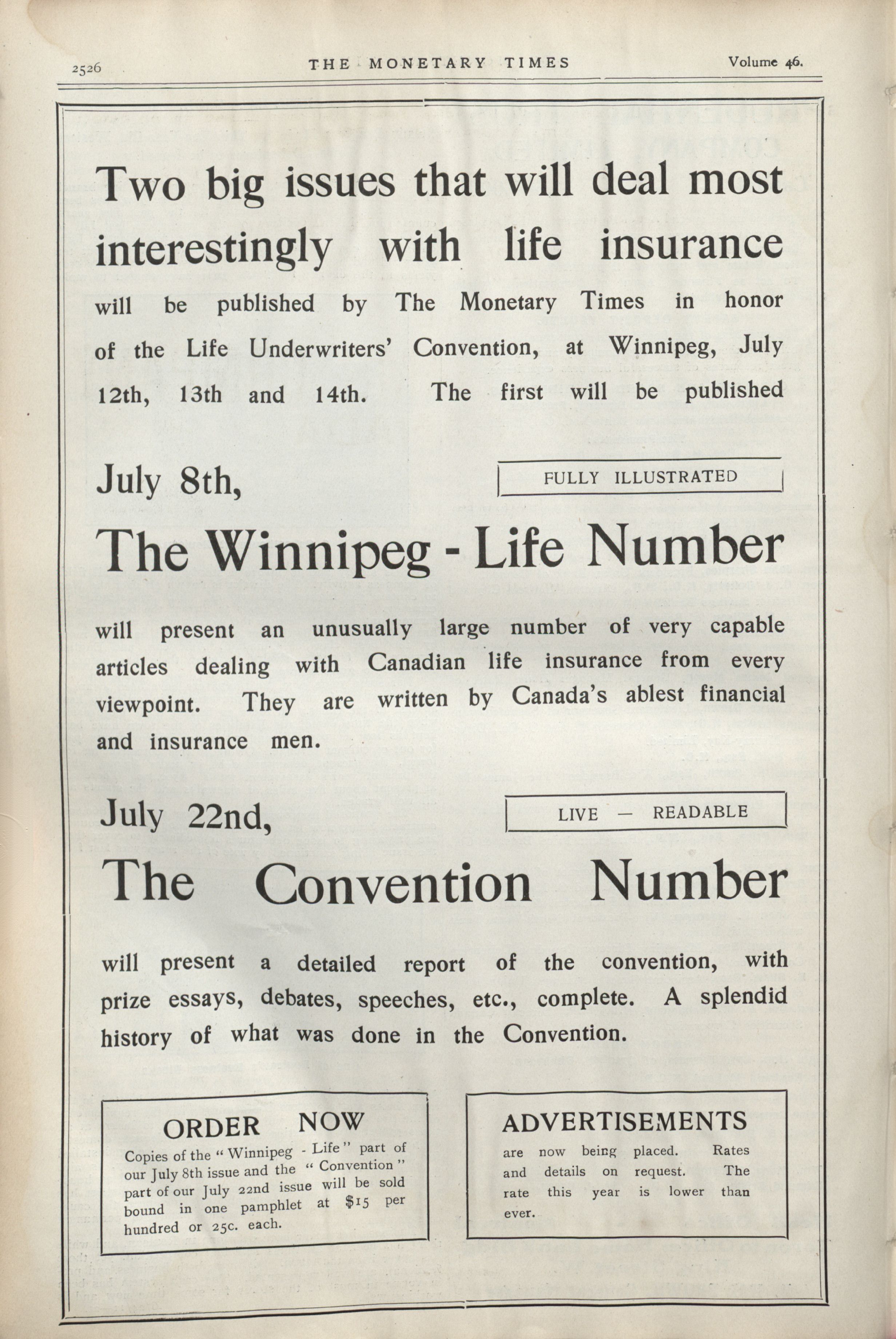 - The Monetary Times, trade review and insurance chronicle. : Vol. 46 No. 25 (June 24th, 1911.)