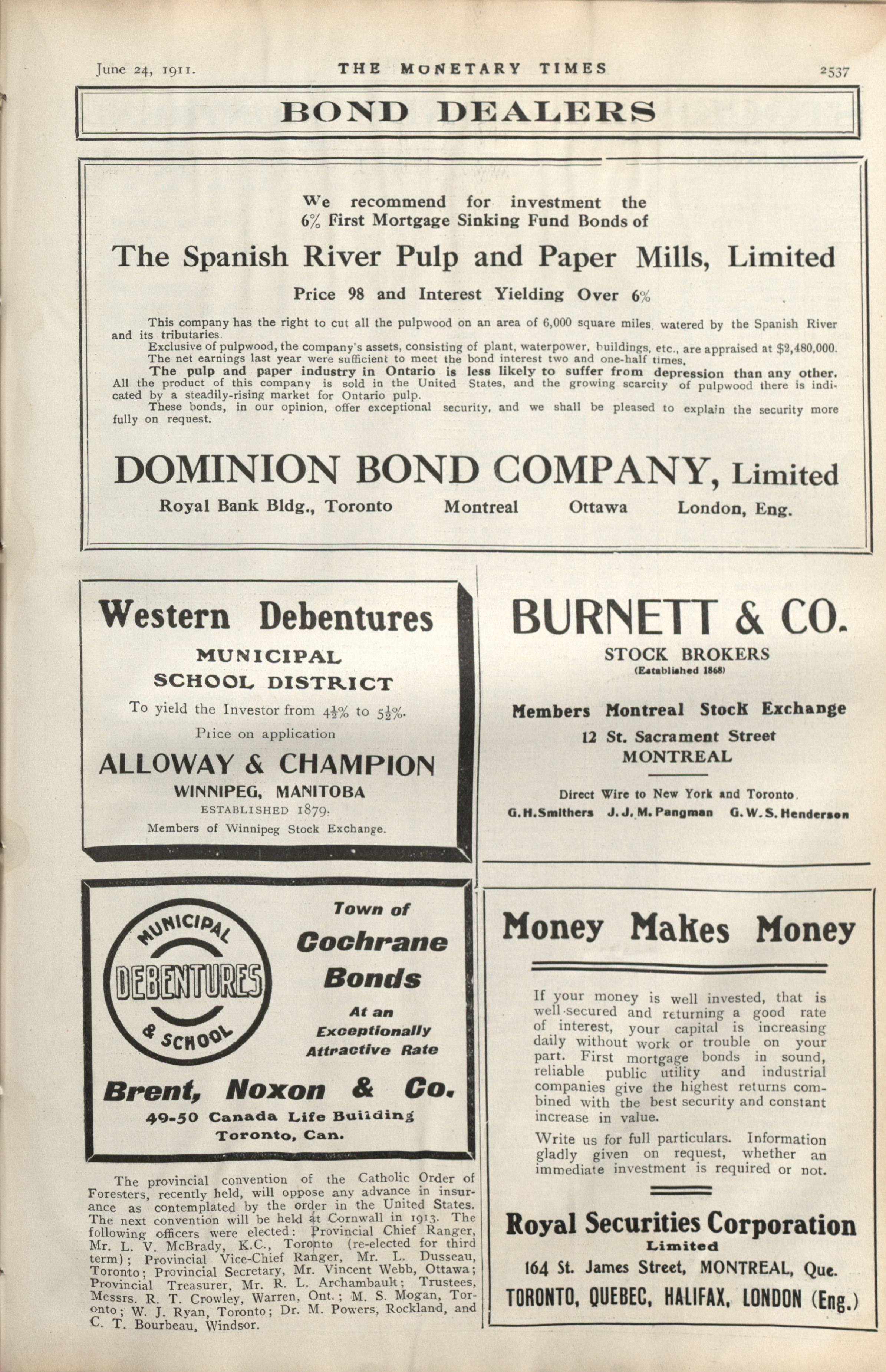 - The Monetary Times, trade review and insurance chronicle. : Vol. 46 No. 25 (June 24th, 1911.)