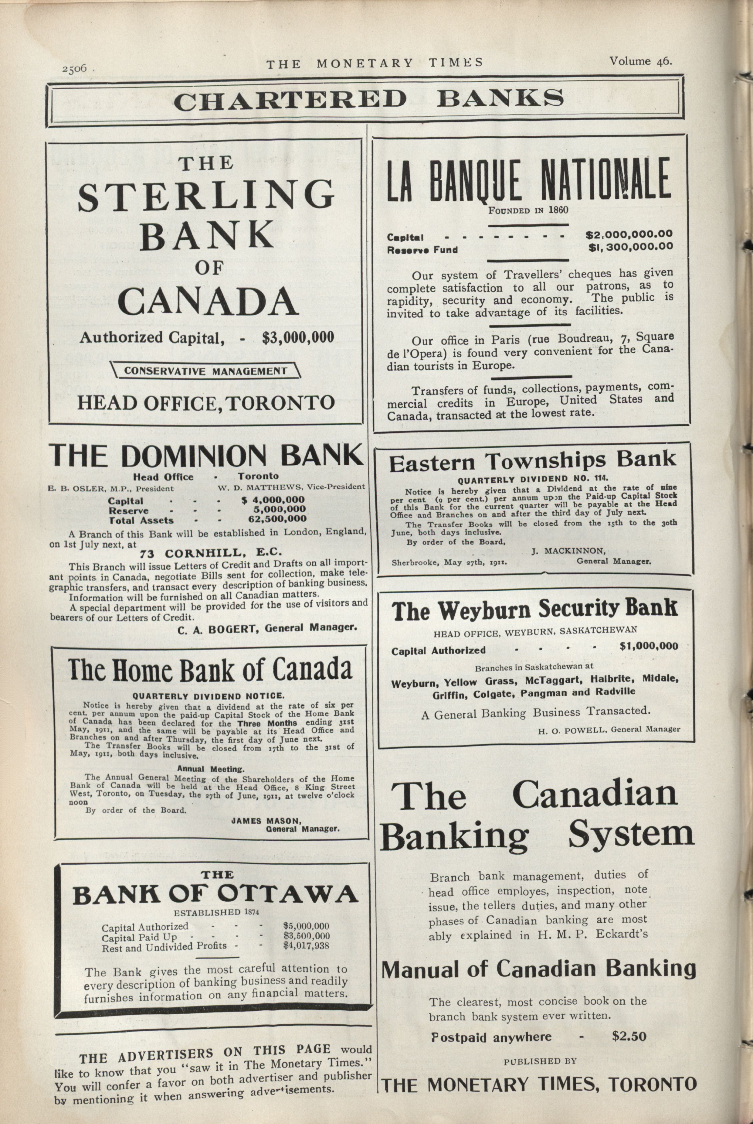 - Toronto, Canada : The Monetary Times Printing Company of Canada, Limited, [1911]