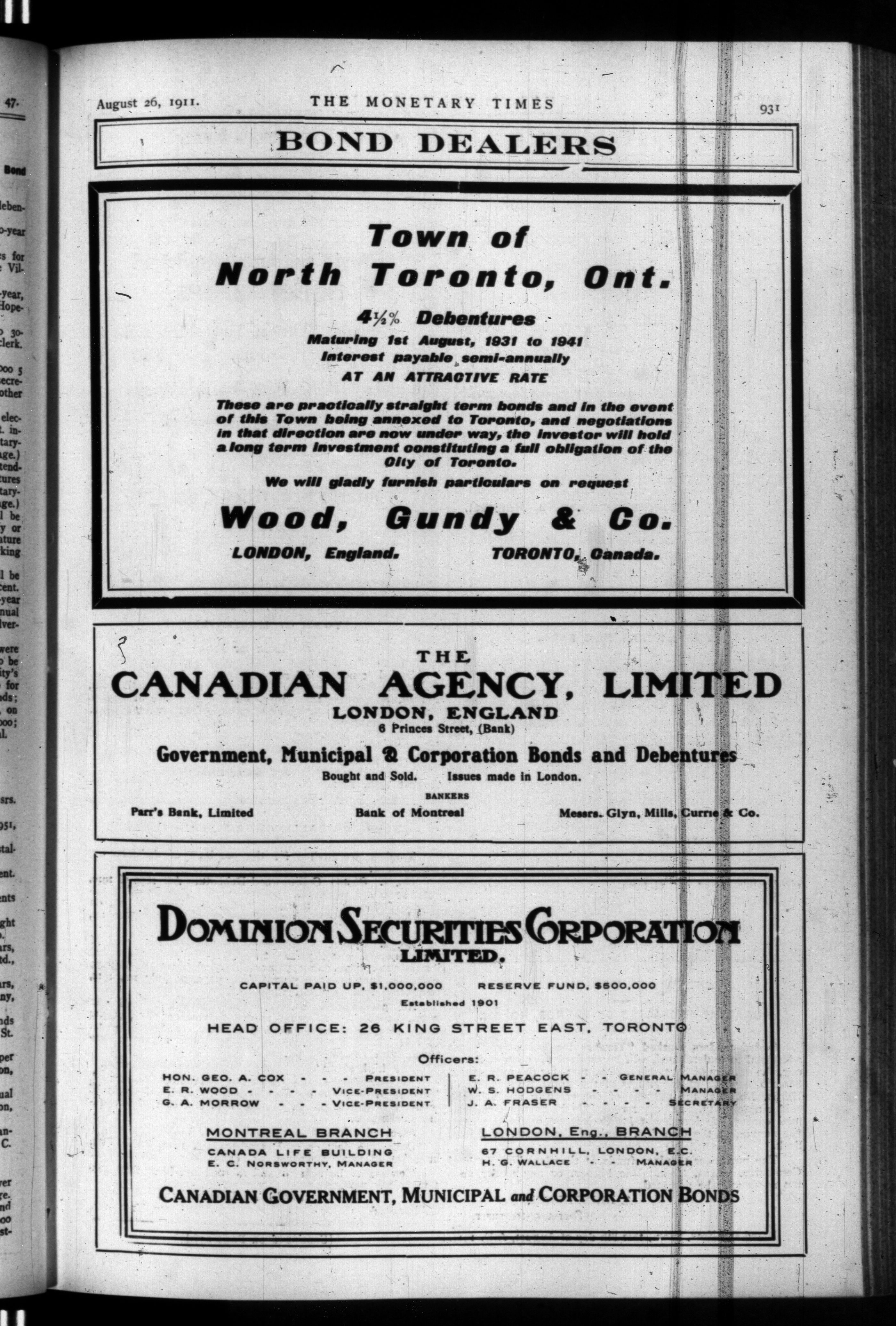 The monetary times, trade review and insurance chronicle : Vol. 47, No. 9 (August 26, 1911)