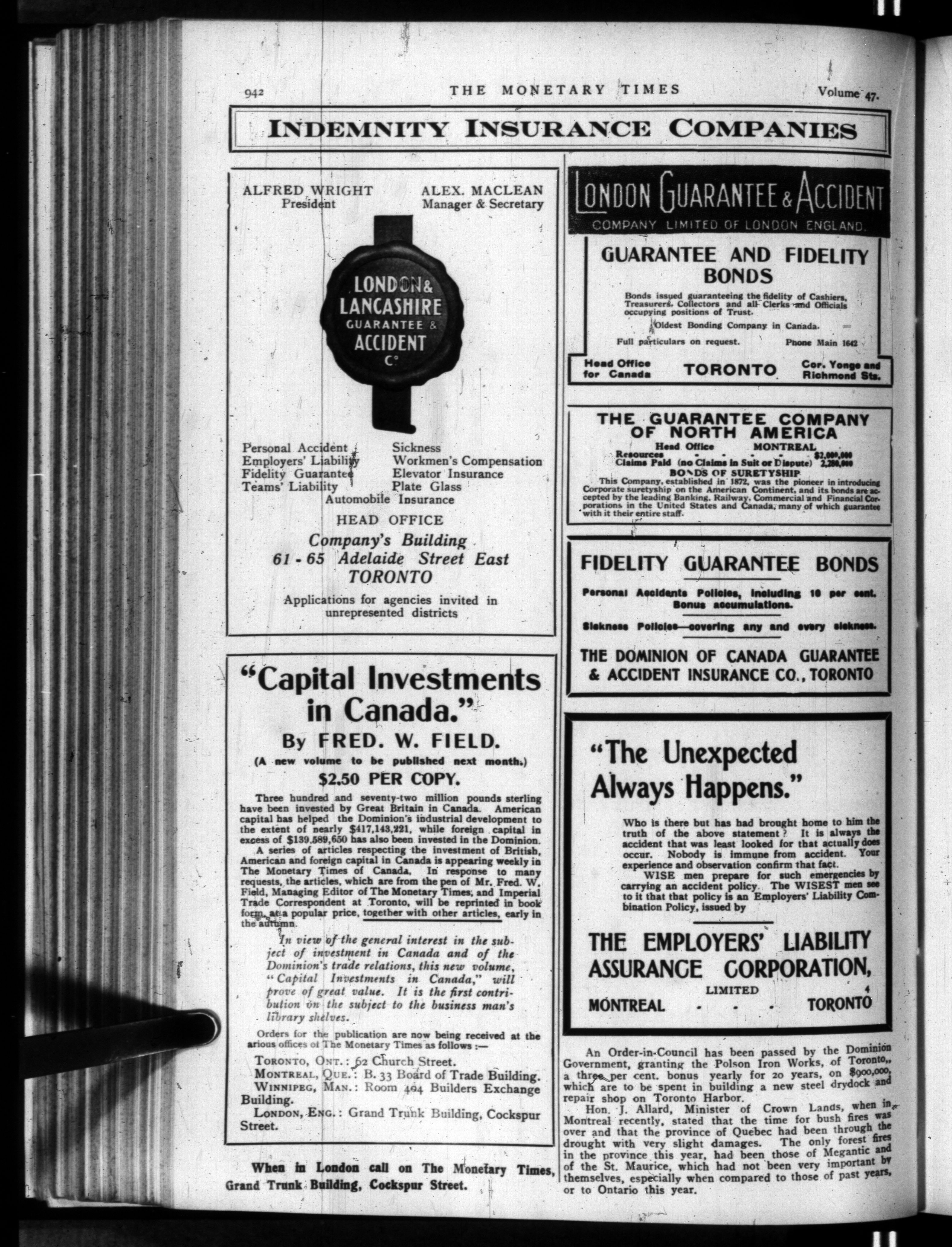 The Monetary Times, Trade Review and Insurance Chronicle of Canada