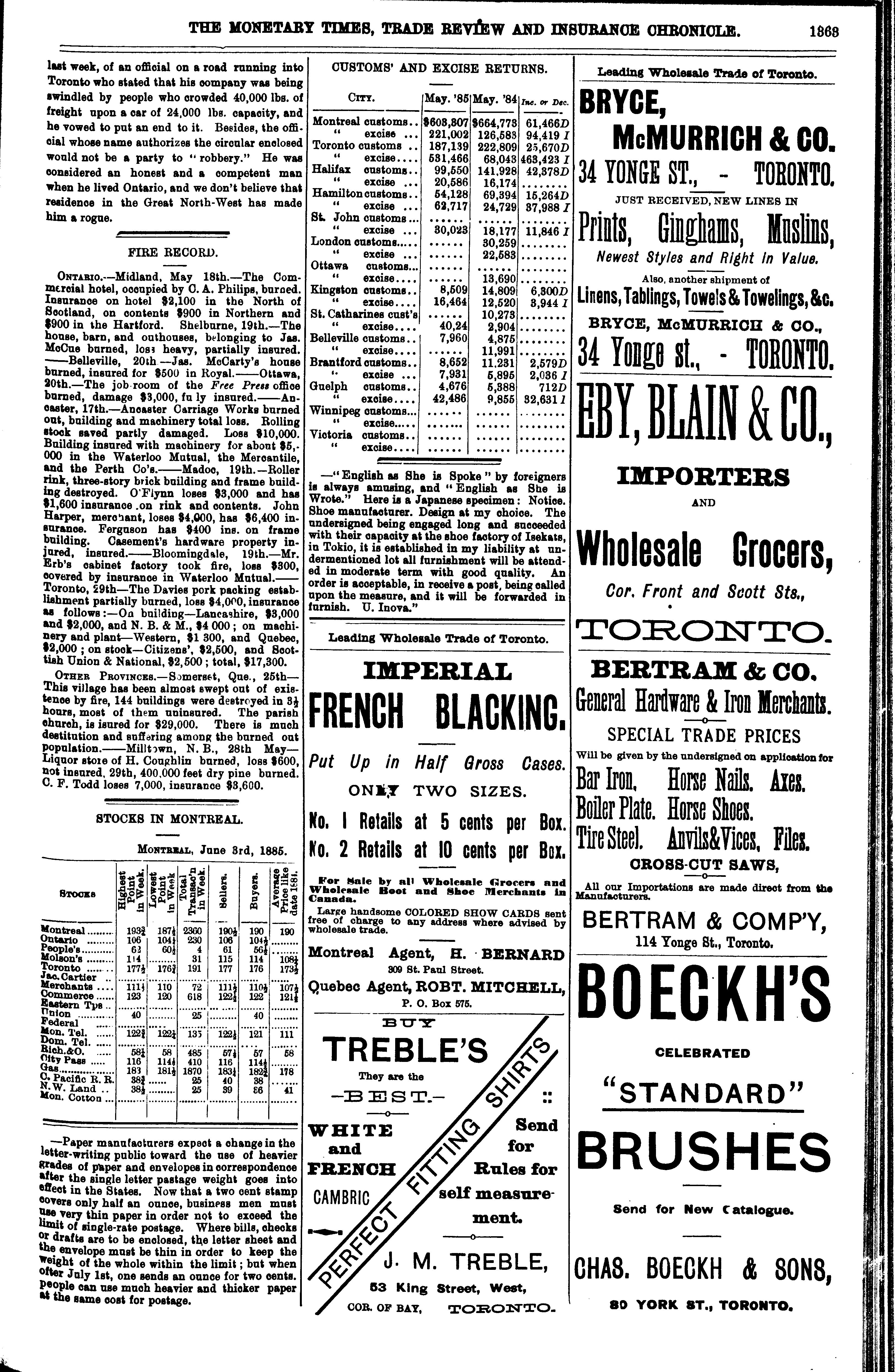The monetary times, trade review and insurance chronicle : [Vol. 18, no. 49 (June 5, 1885)]
