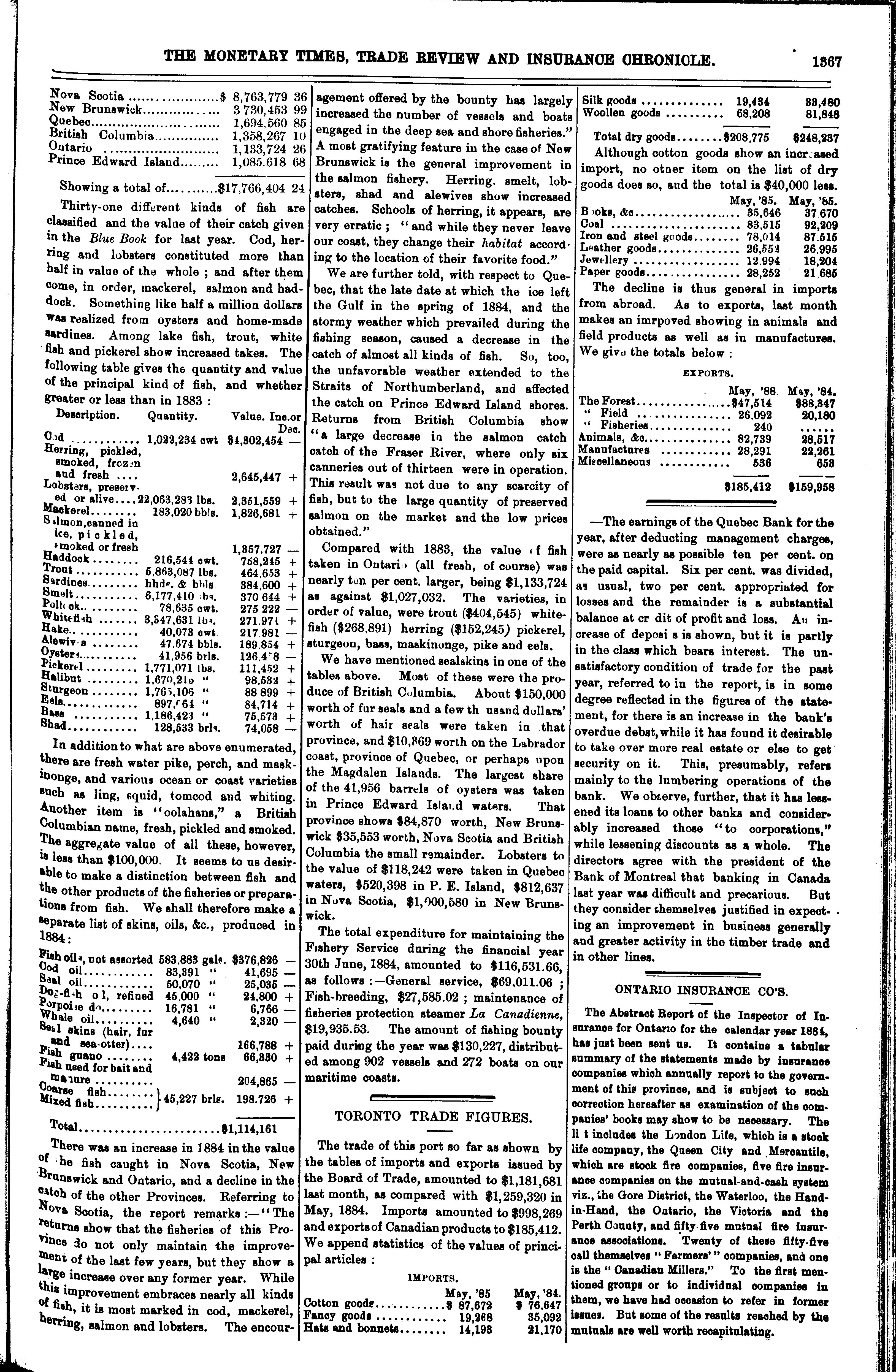 The monetary times, trade review and insurance chronicle : [Vol. 18, no. 49 (June 5, 1885)]